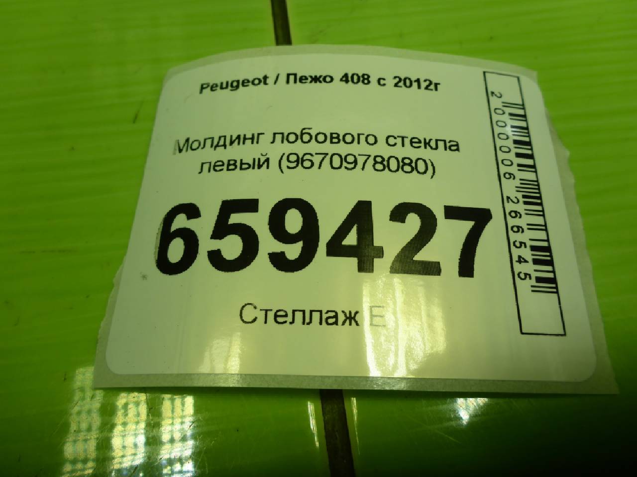 Деталь: Peugeot 408 - Молдинг лобового стекла левый (9670978080)