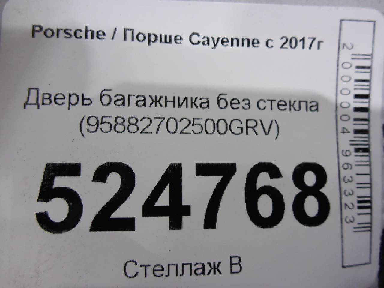 Деталь: Porsche Cayenne 958 - Крышка багажника без стекла (95882702500GRV)