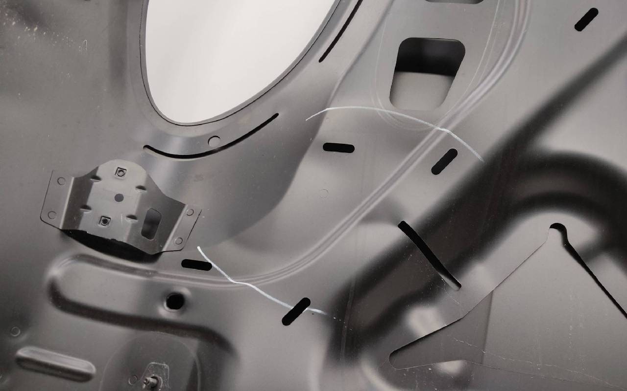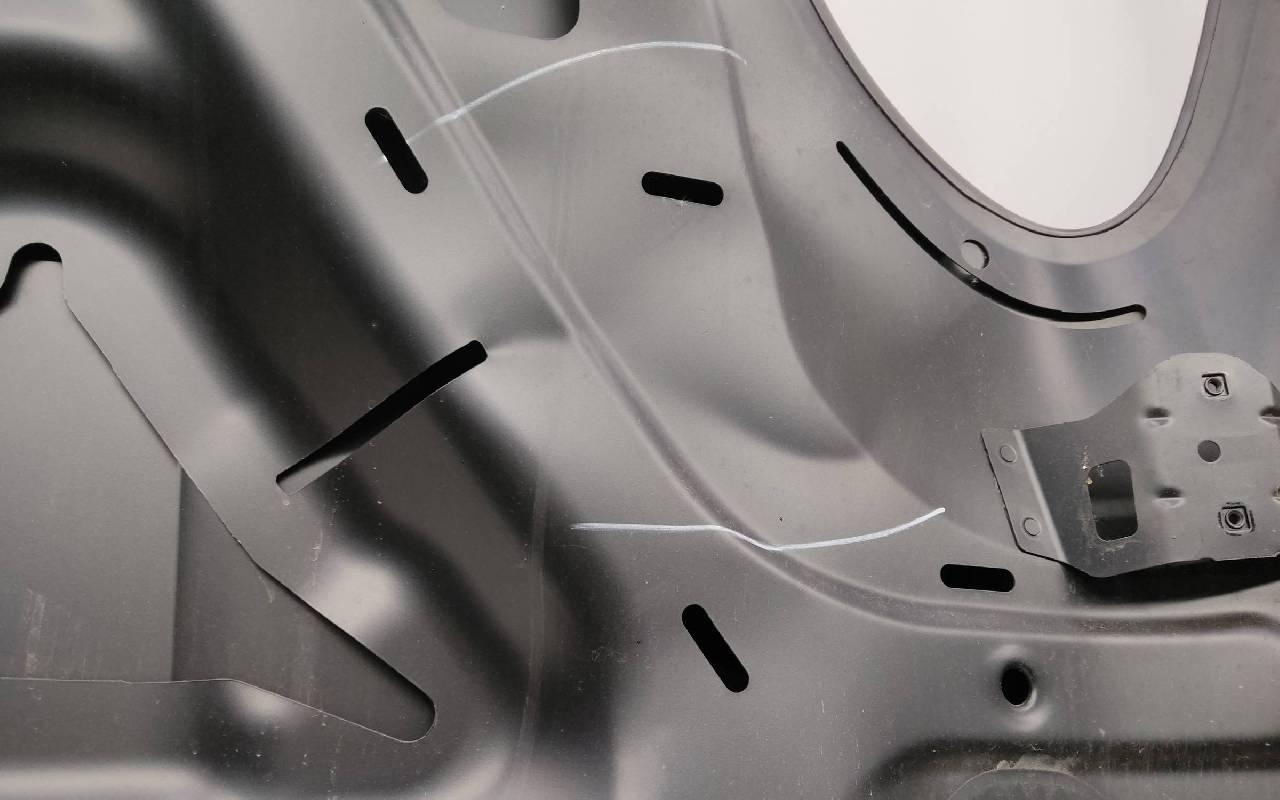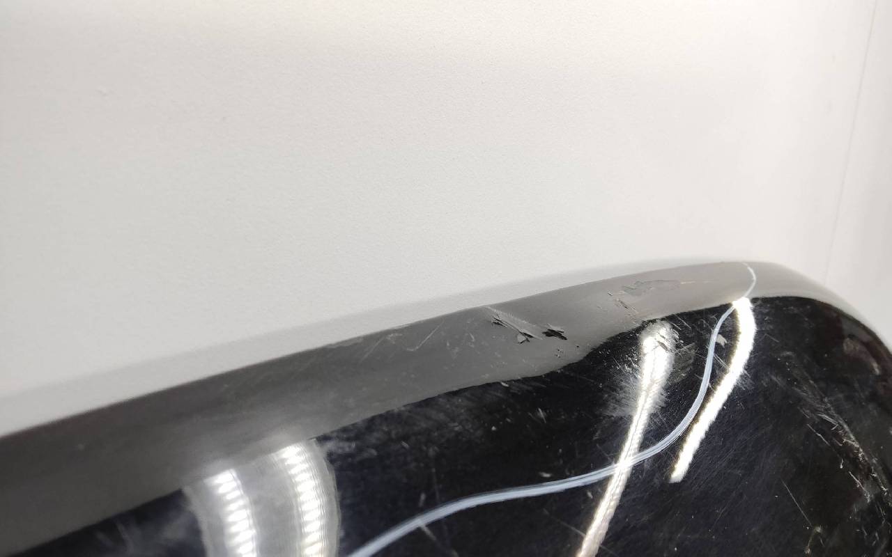 Состояние детали хорошее. Чёрного цвета, скол ЛКП. Небольшая вмятина в передней части, погнут внутренний каркас. Потребуется ремонт
