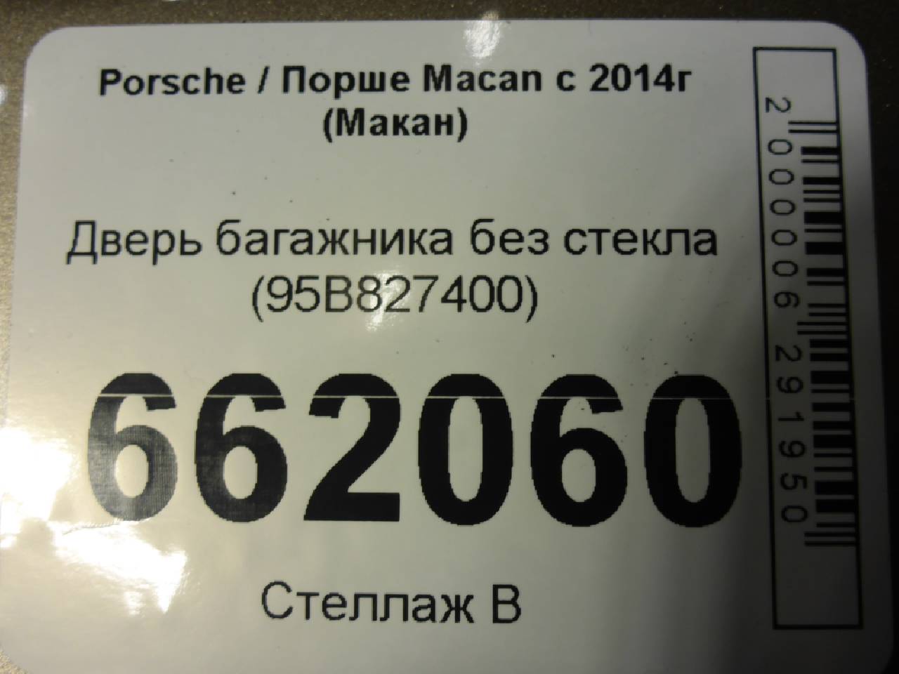 Деталь: Porsche Macan - Крышка багажника без стекла (95B827400)