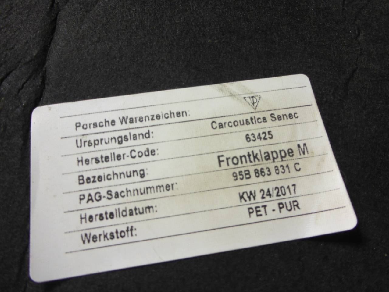 Деталь: Porsche Macan - Шумоизоляция капота (95B863831C)