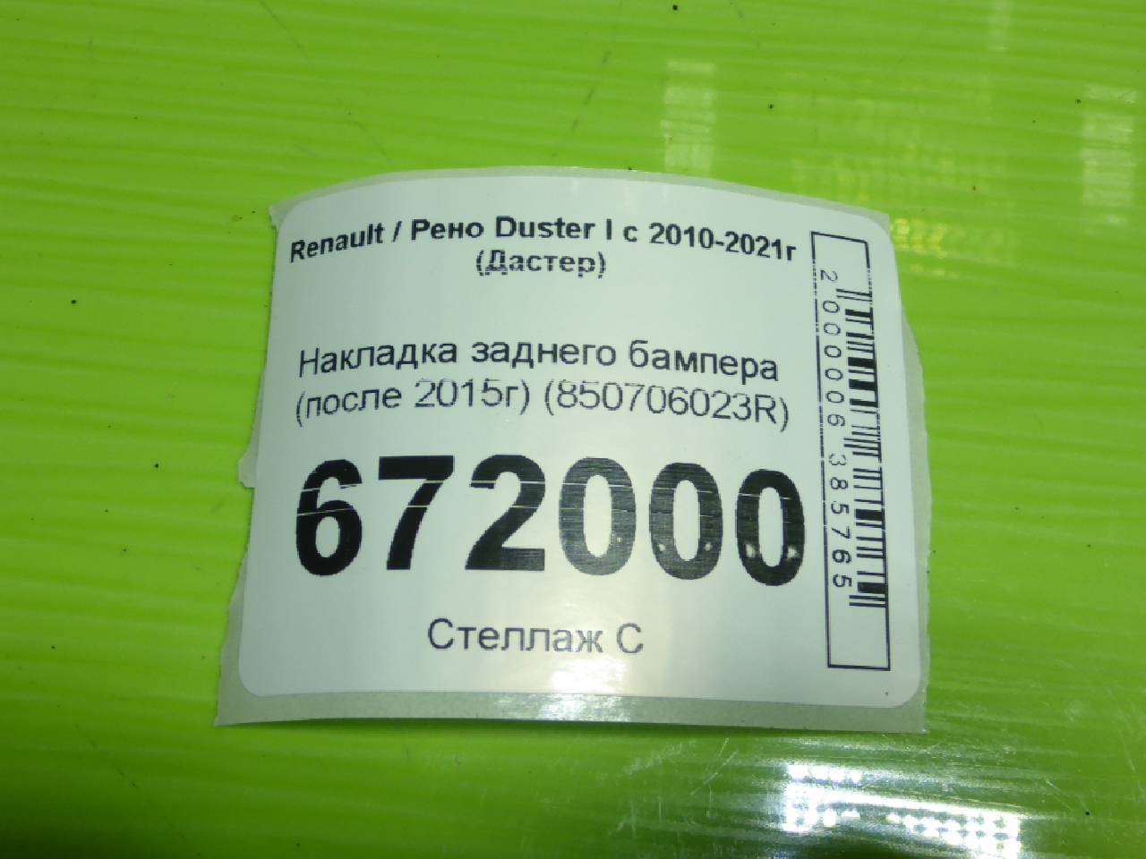 Деталь: Renault Duster - Накладка заднего бампера (после 2015г под парктроник) (850706023R)