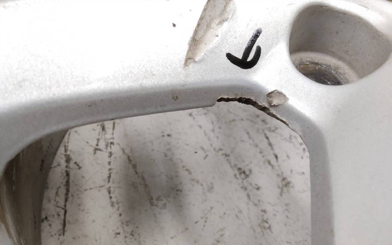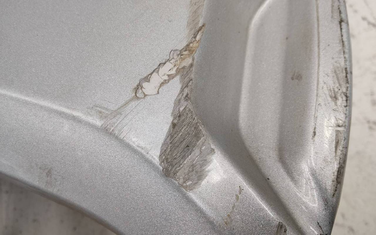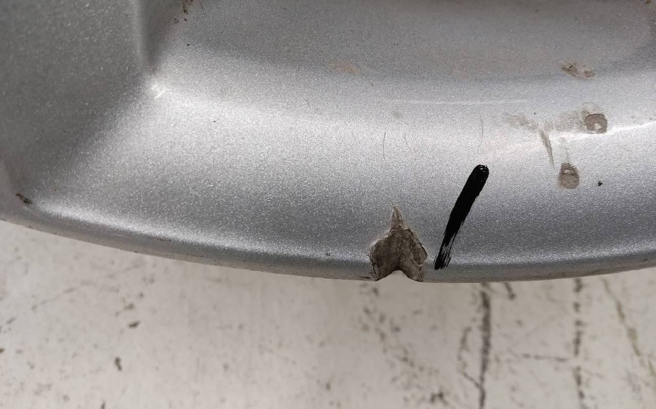 Состояние детали удовлетворительное. Серебристого цвета, скол ЛКП. Царапины. Потребуется ремонт