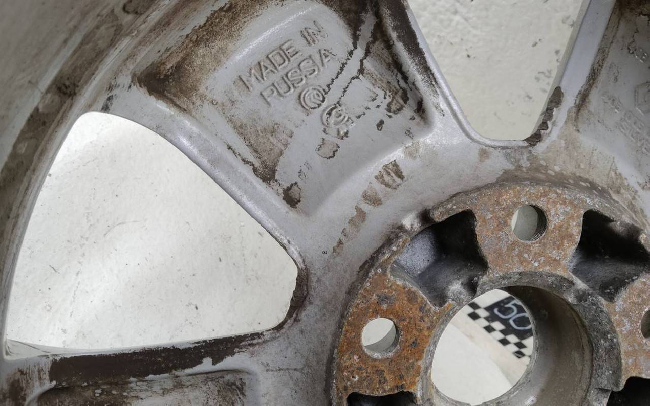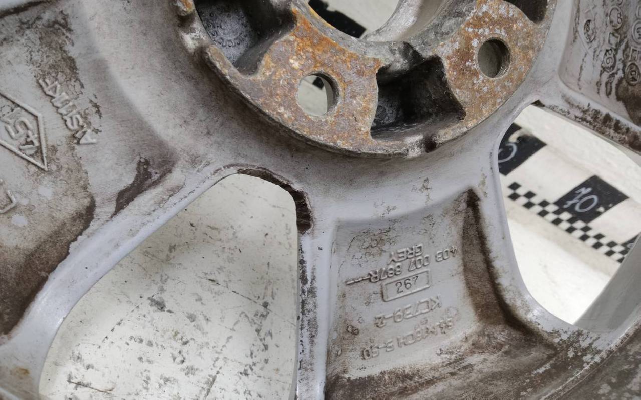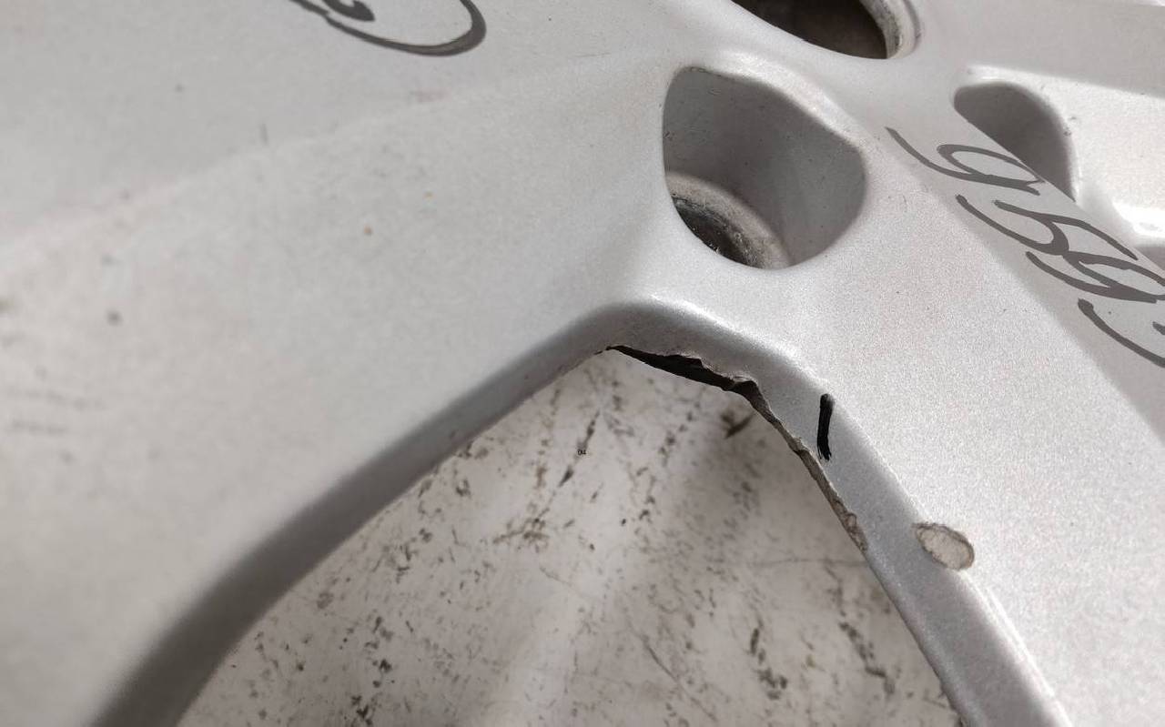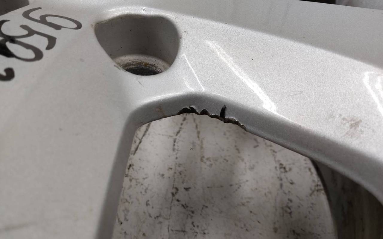 Состояние детали удовлетворительное. Серебристого цвета, скол ЛКП. Царапины. Потребуется ремонт