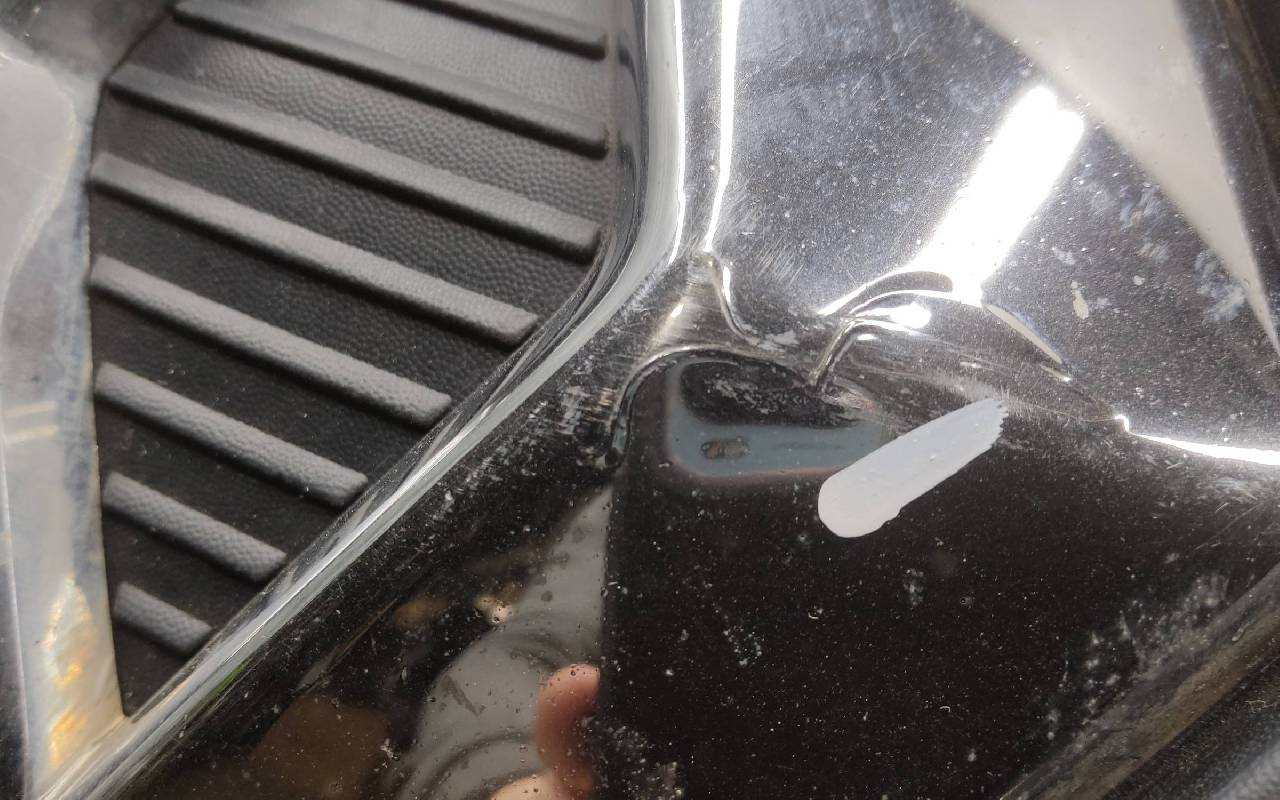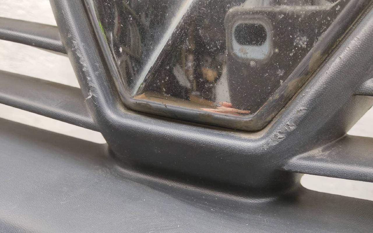 Состояние детали хорошее. Серебристого цвета в сборе без молдингов и левой рамки. После небольшого ремонта, дефект пластика на фото. Крепления на месте. Может потребоваться незначительный дополнительный ремонт