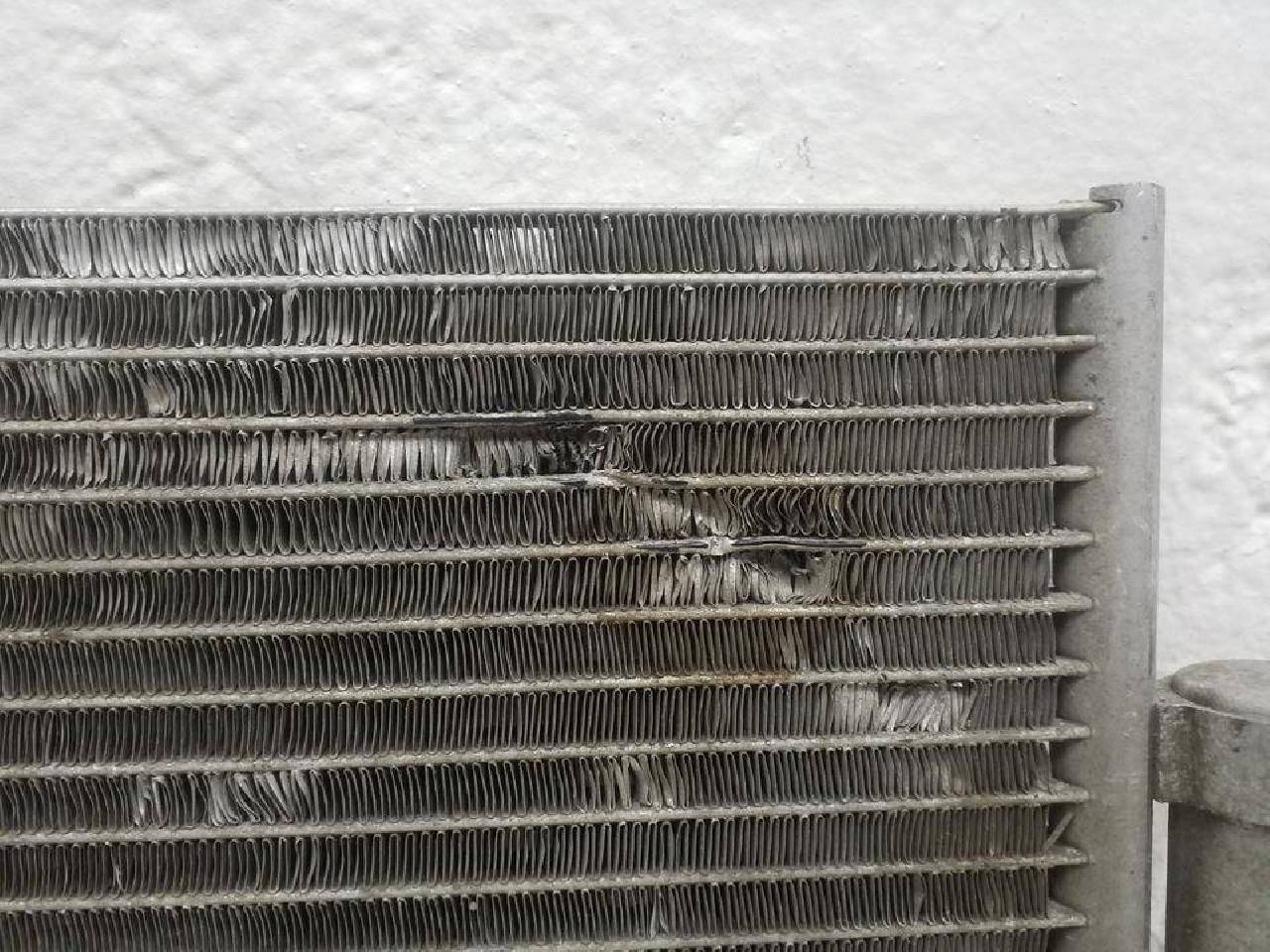 Состояние детали удовлетворительное. Потертость поверхности. Дефект металла на фото, замятость сот. Под ремонт