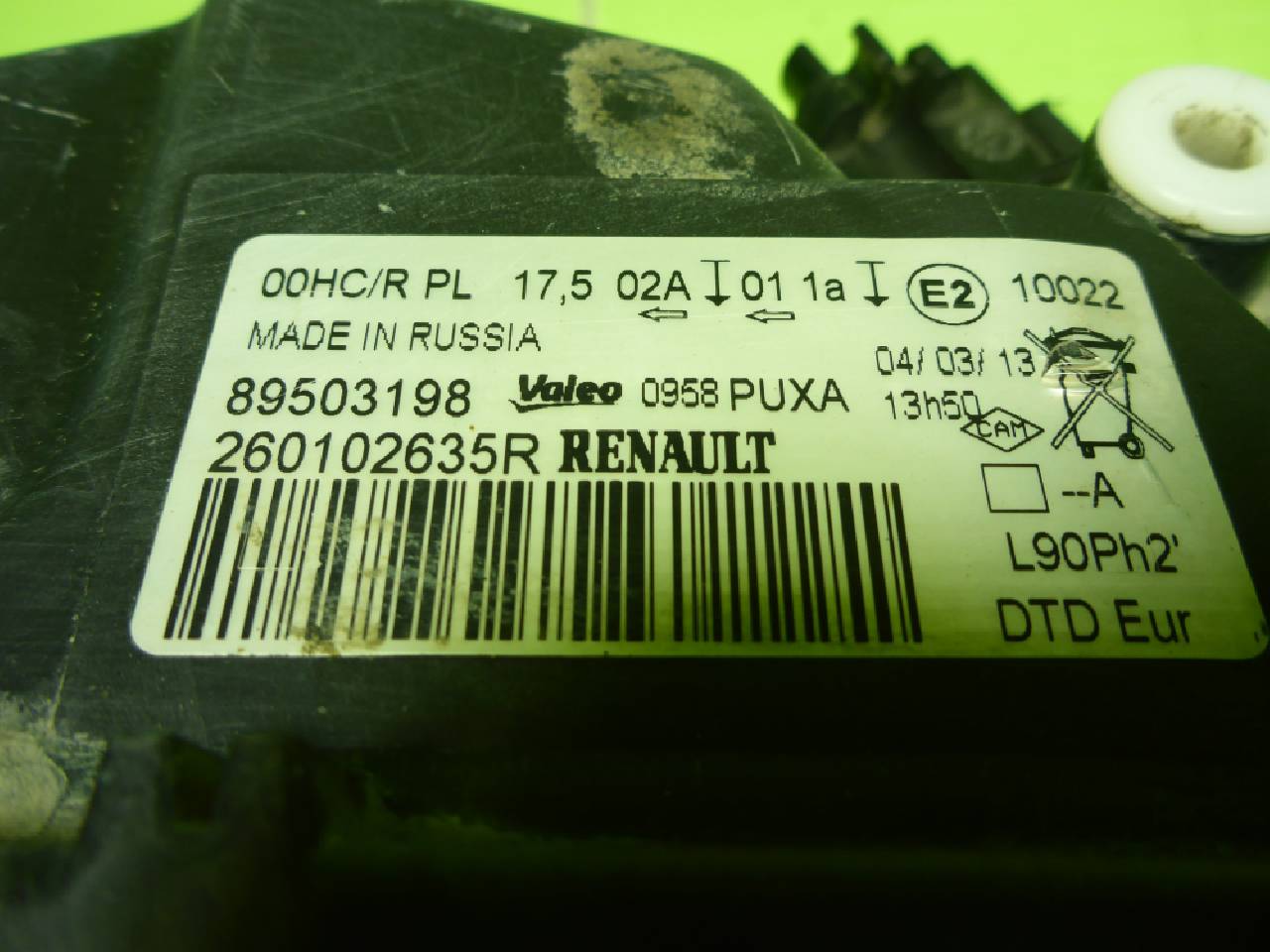 Деталь: Renault Logan - Фара правая (после 2009г галоген) (260102635R)