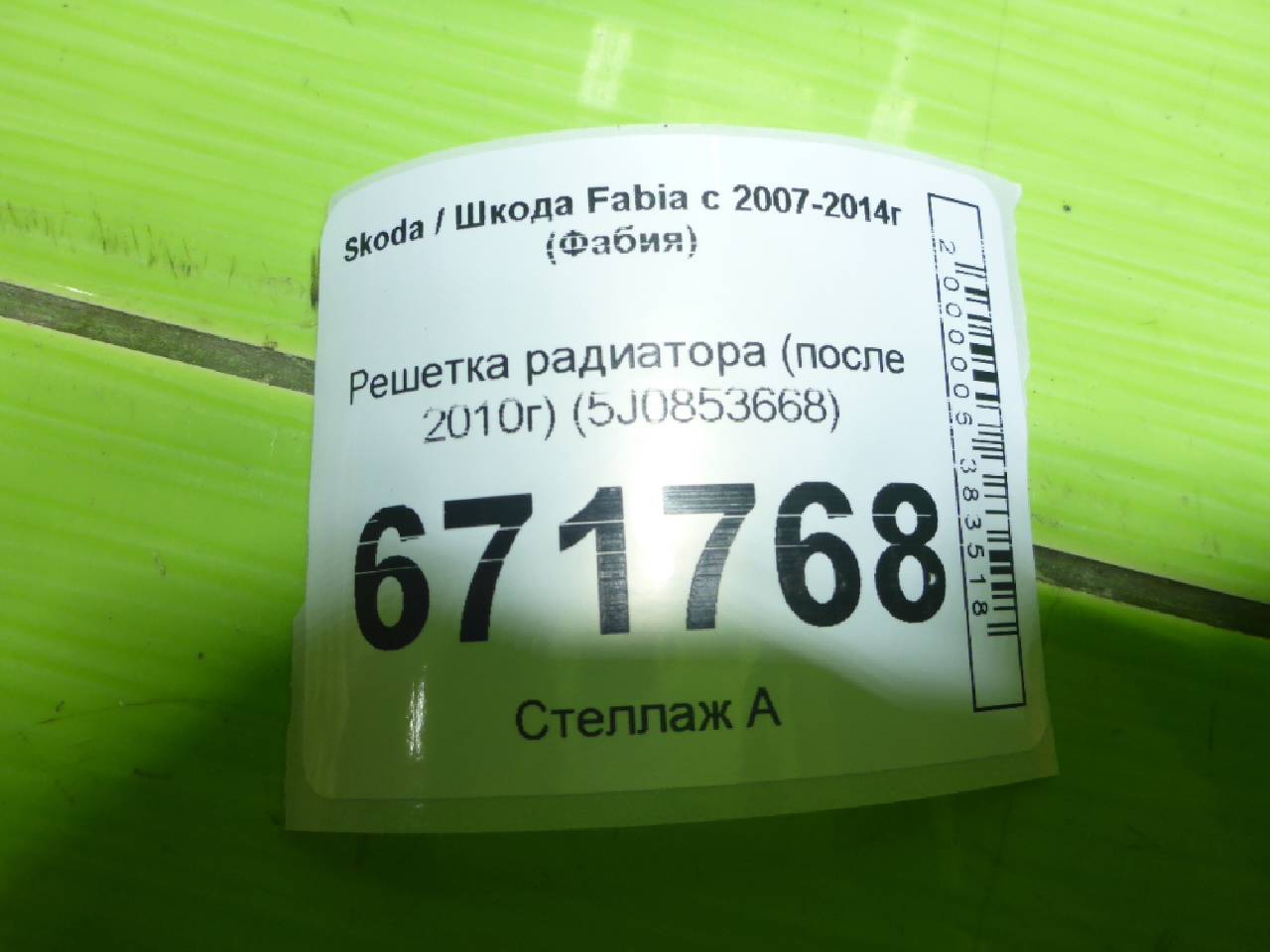 Деталь: Skoda Fabia 2 - Решетка радиатора (после 2010г) (5J0853668)