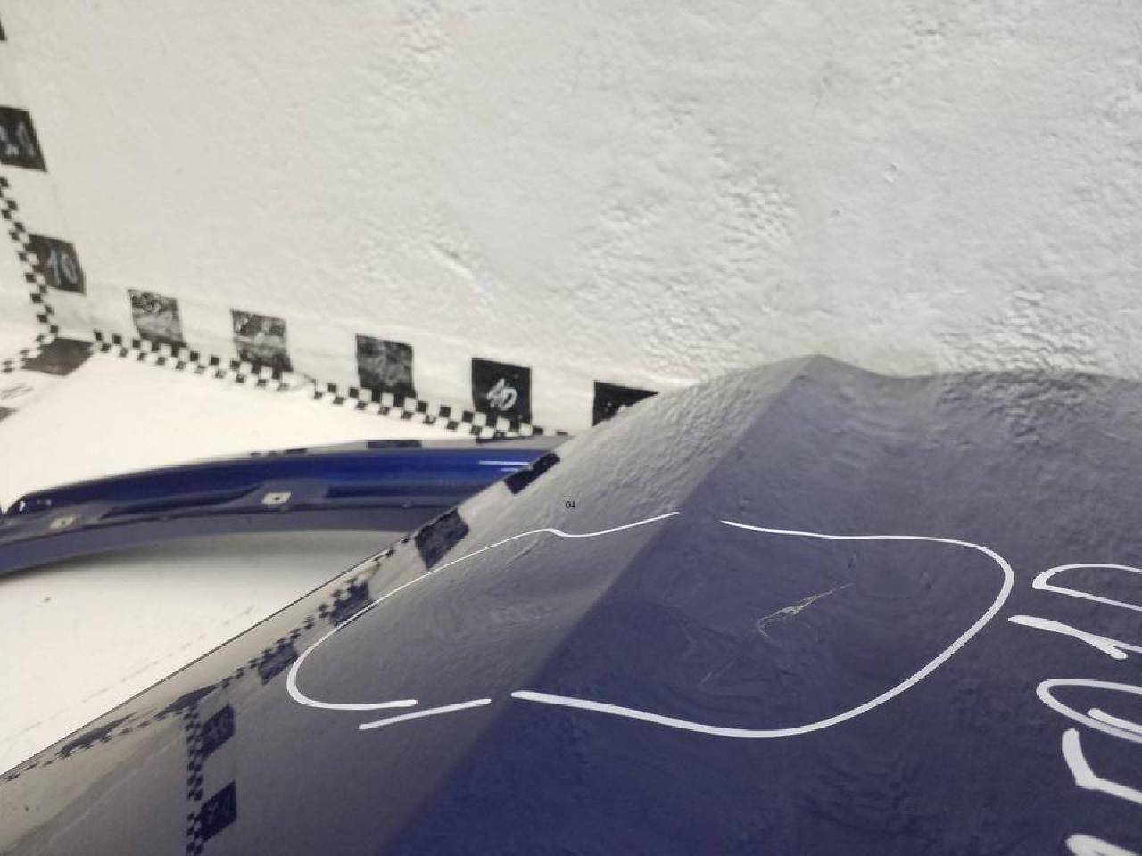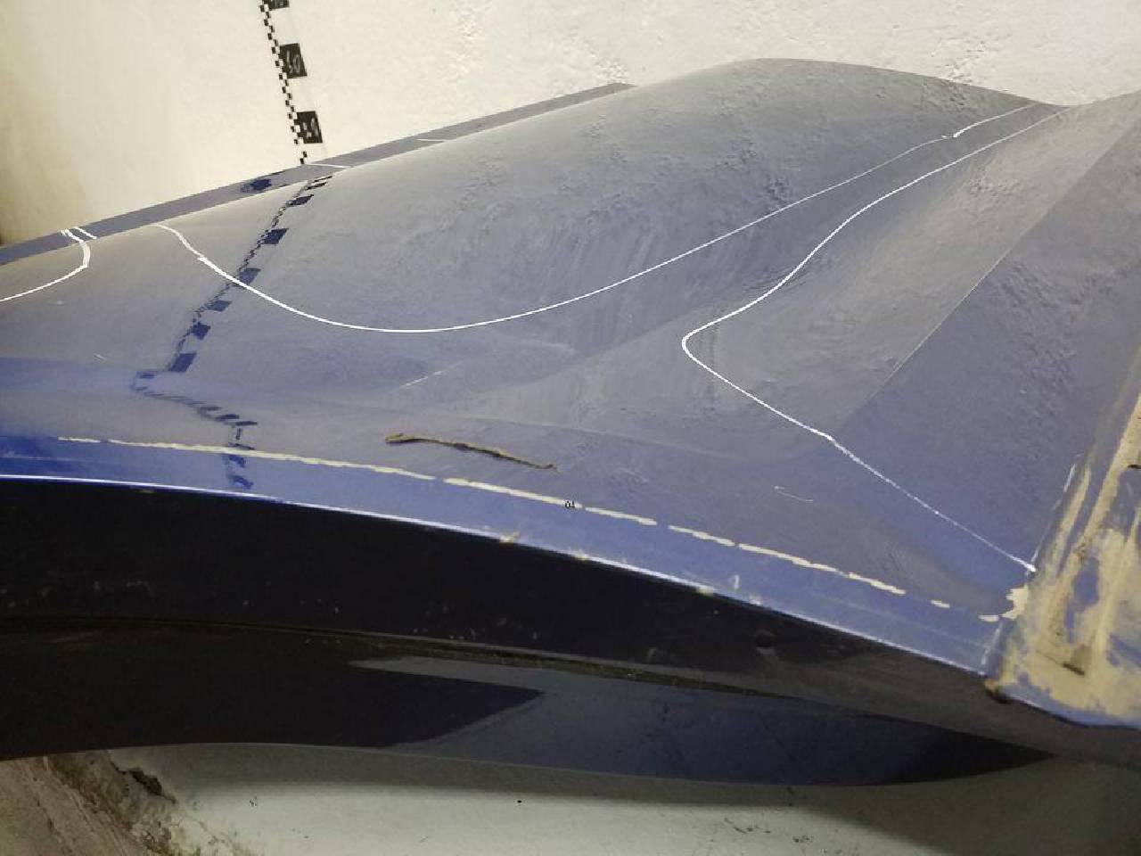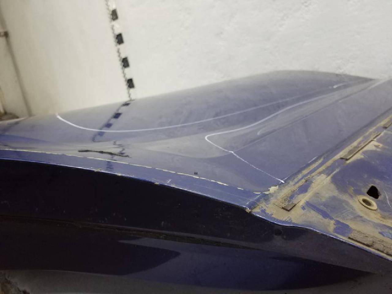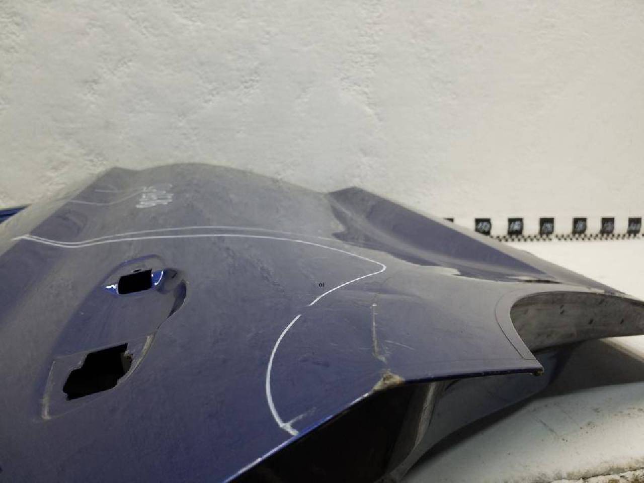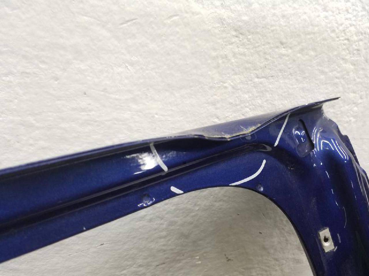 Состояние детали хорошее. Синего цвета, скол ЛКП. Вмятины. Под ремонт