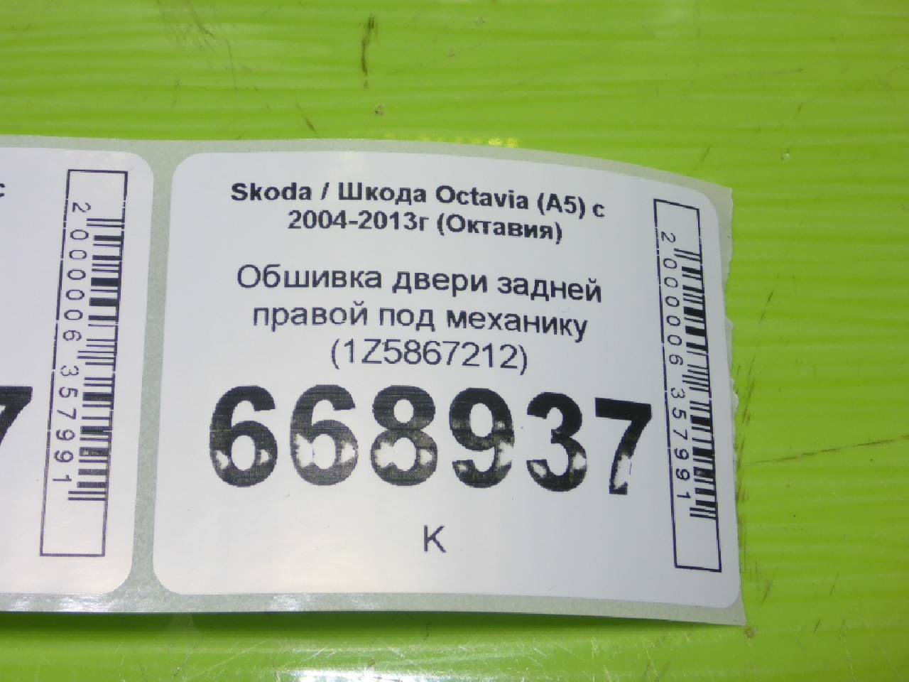 Деталь: Skoda Octavia 2 A5 - Обшивка двери задней правой под механику (1Z5867212)