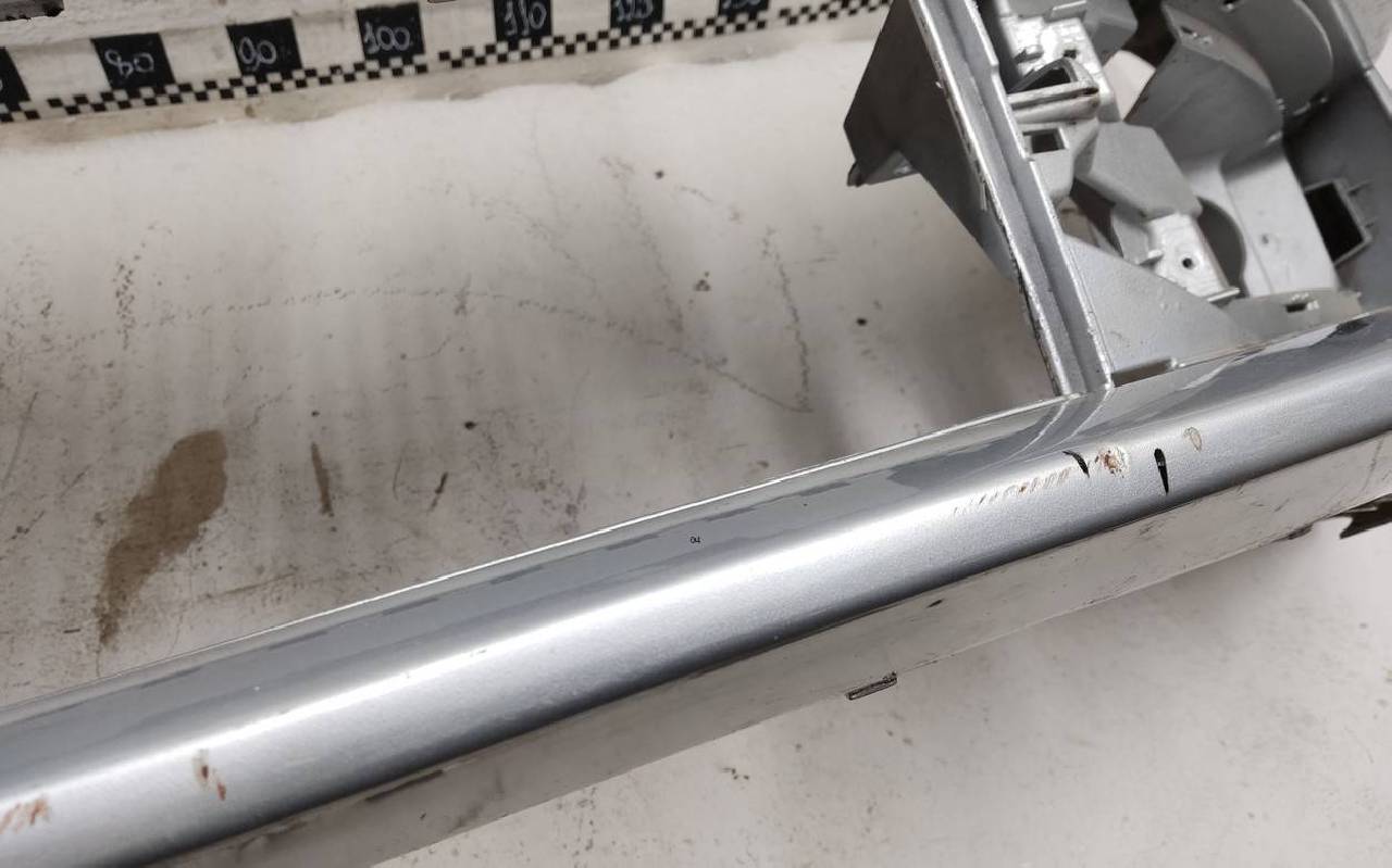 Состояние детали хорошее. Серебристого цвета с решеткой. Скол ЛКП, царапинки. Крепления целые, отсутствуют две направляющие. Может потребоваться незначительный ремонт