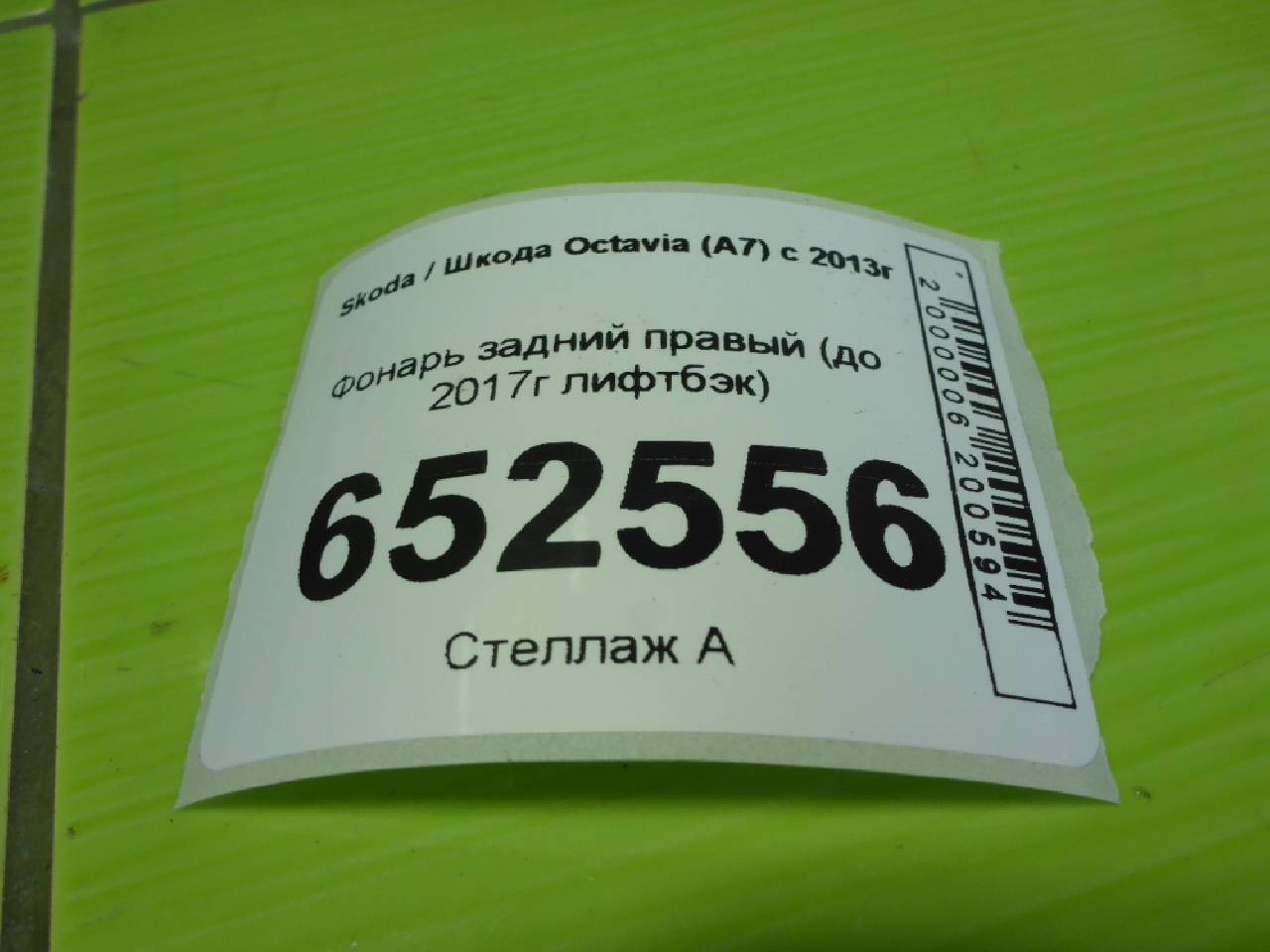 Деталь: Skoda Octavia 3 A7 - Фонарь задний правый (до 2017г лифтбэк)