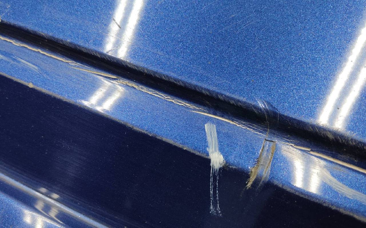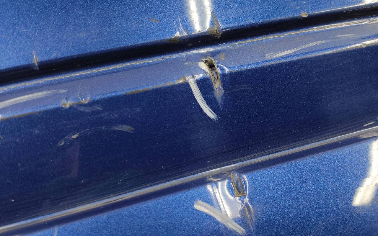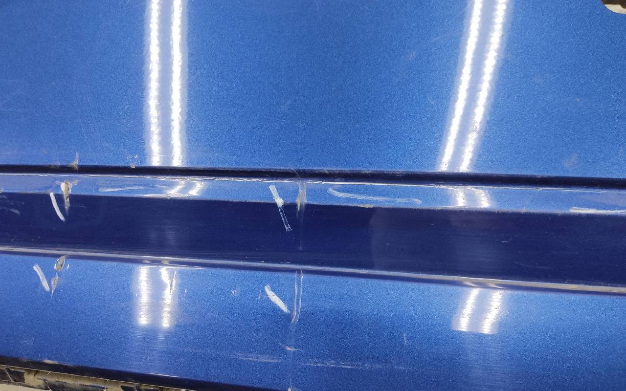Состояние детали хорошее. Синего цвета под парктроники. Царапинки, дефект пластика на фото. Крепления целые. Потребуется незначительный ремонт