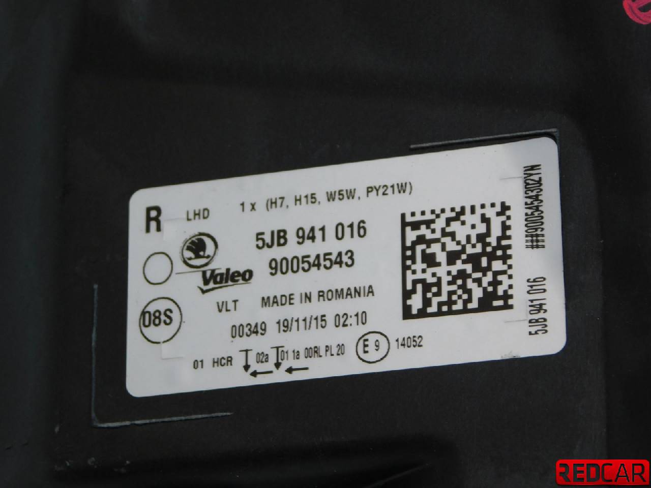Купить Фара правая 5JB941016 для Skoda Rapid (Шкода Рапид) 204132 ✓ с доставкой по Москве и России
