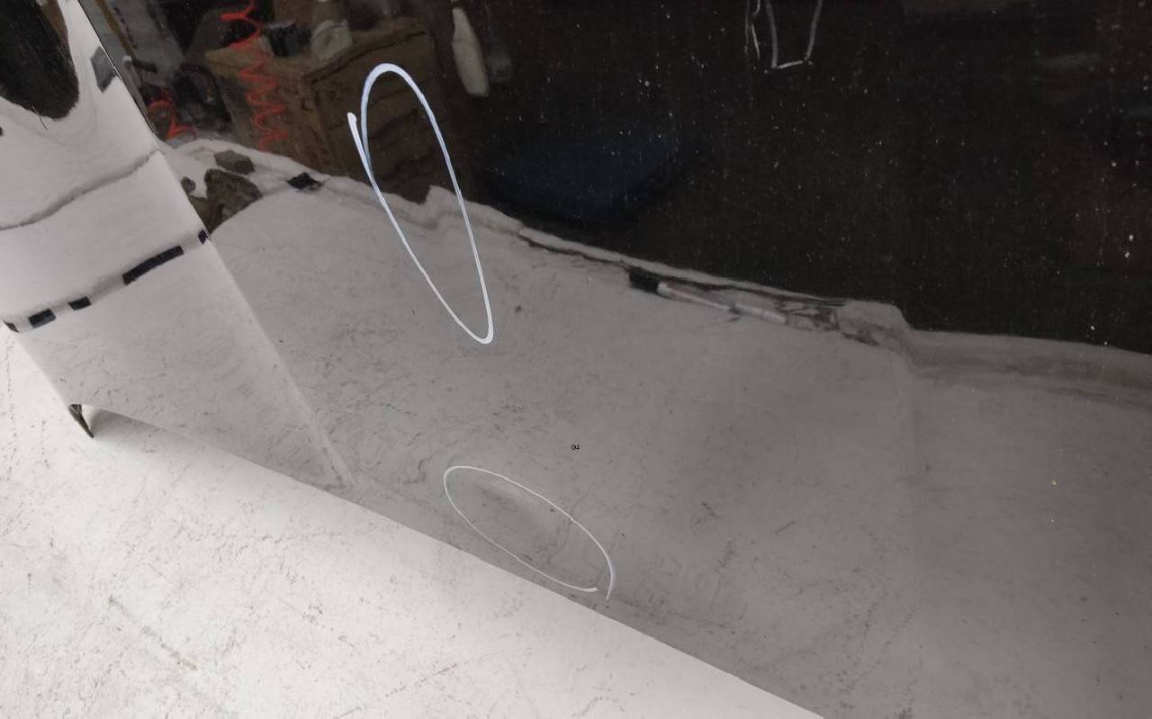 Состояние детали хорошее. Чёрного цвета, скол ЛКП. Небольшие вмятины. Потребуется ремонт