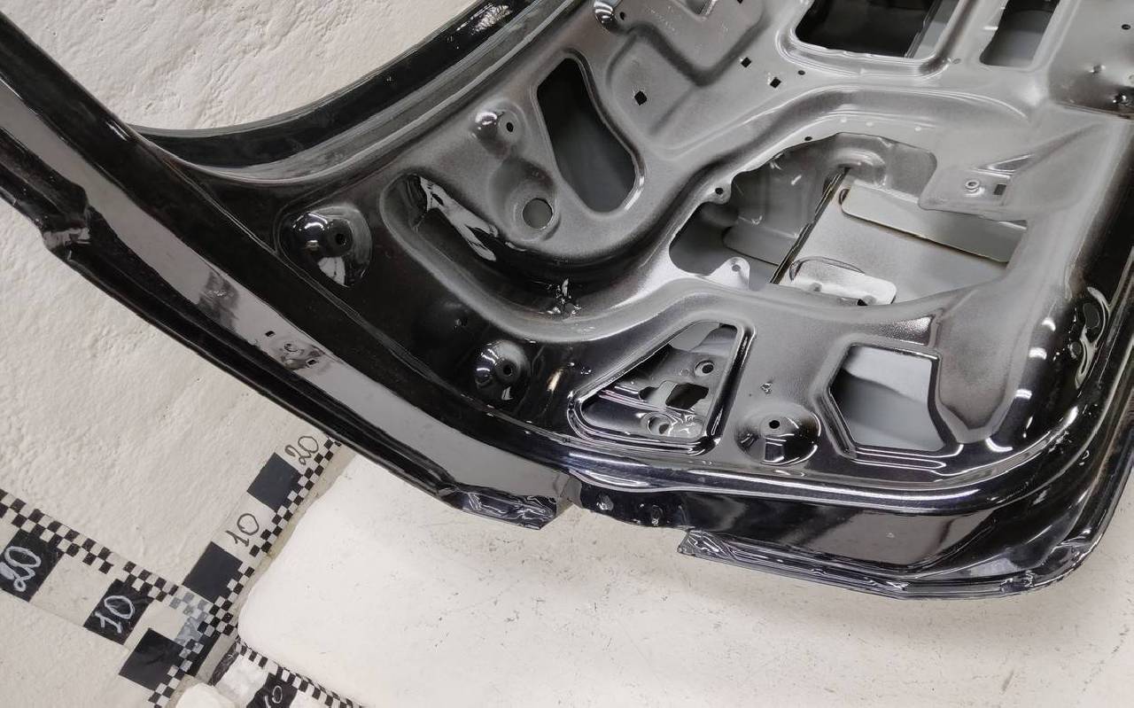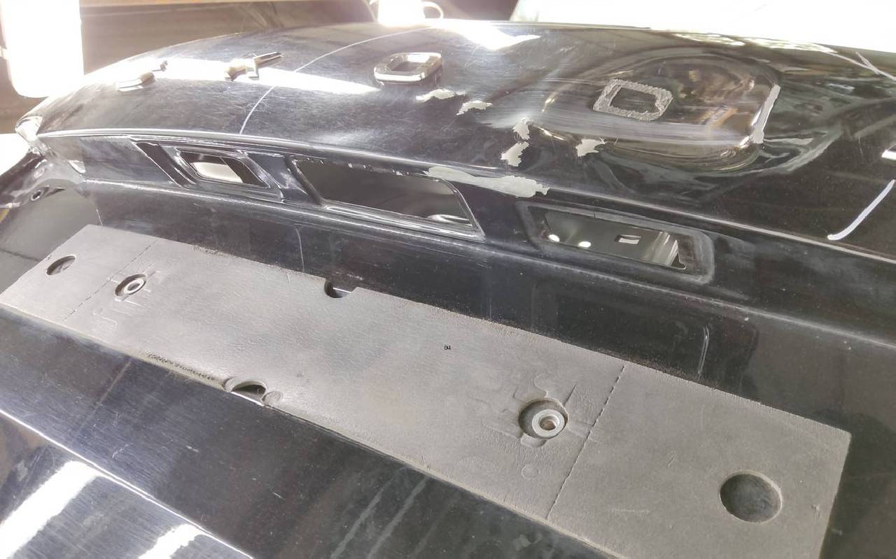 Состояние детали хорошее. Чёрного цвета, скол ЛКП. Вмятина. Потребуется ремонт