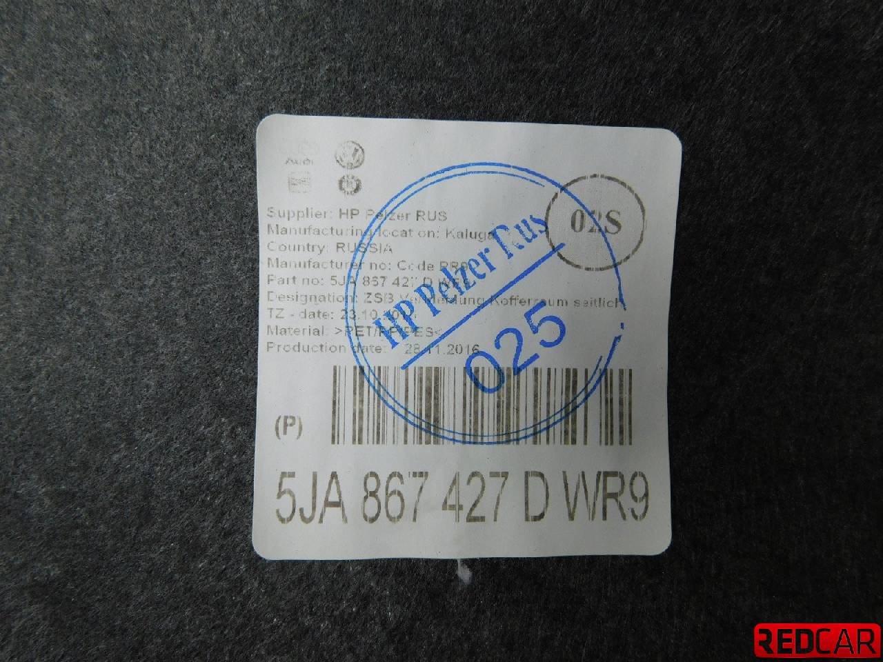 Купить Обшивка багажника 5JA867427D для Skoda Rapid (Шкода Рапид) 431123986 ✓ с доставкой по Москве и России