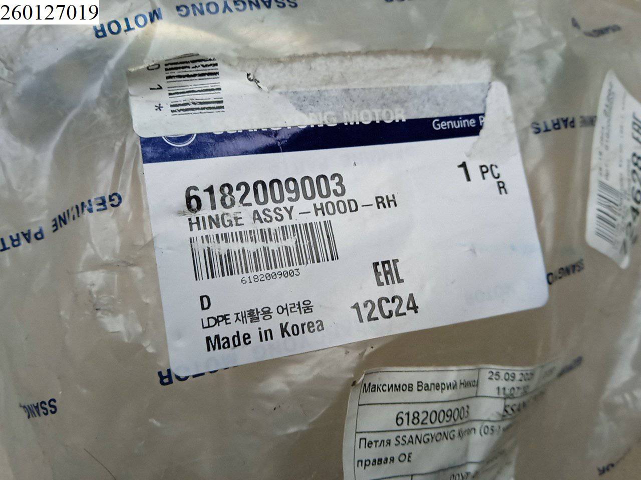Деталь: SsangYong Kyron - Петля капота правая