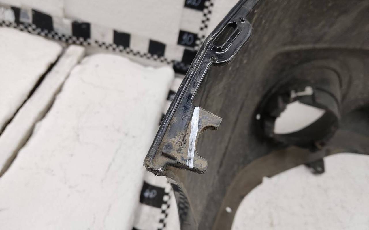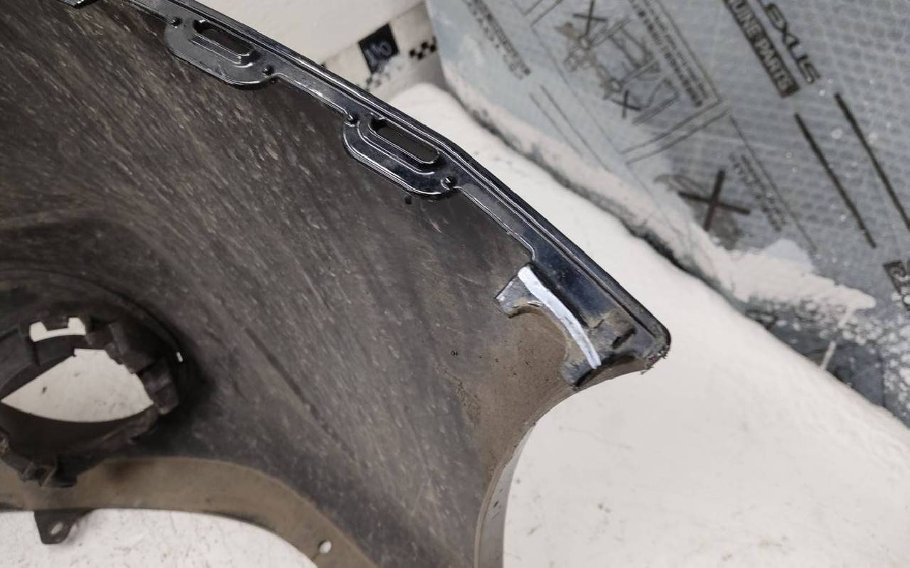 Состояние детали хорошее. Чёрного под омыватели фар. Царапины. Отсутствуют два крепления. Потребуется незначительный ремонт