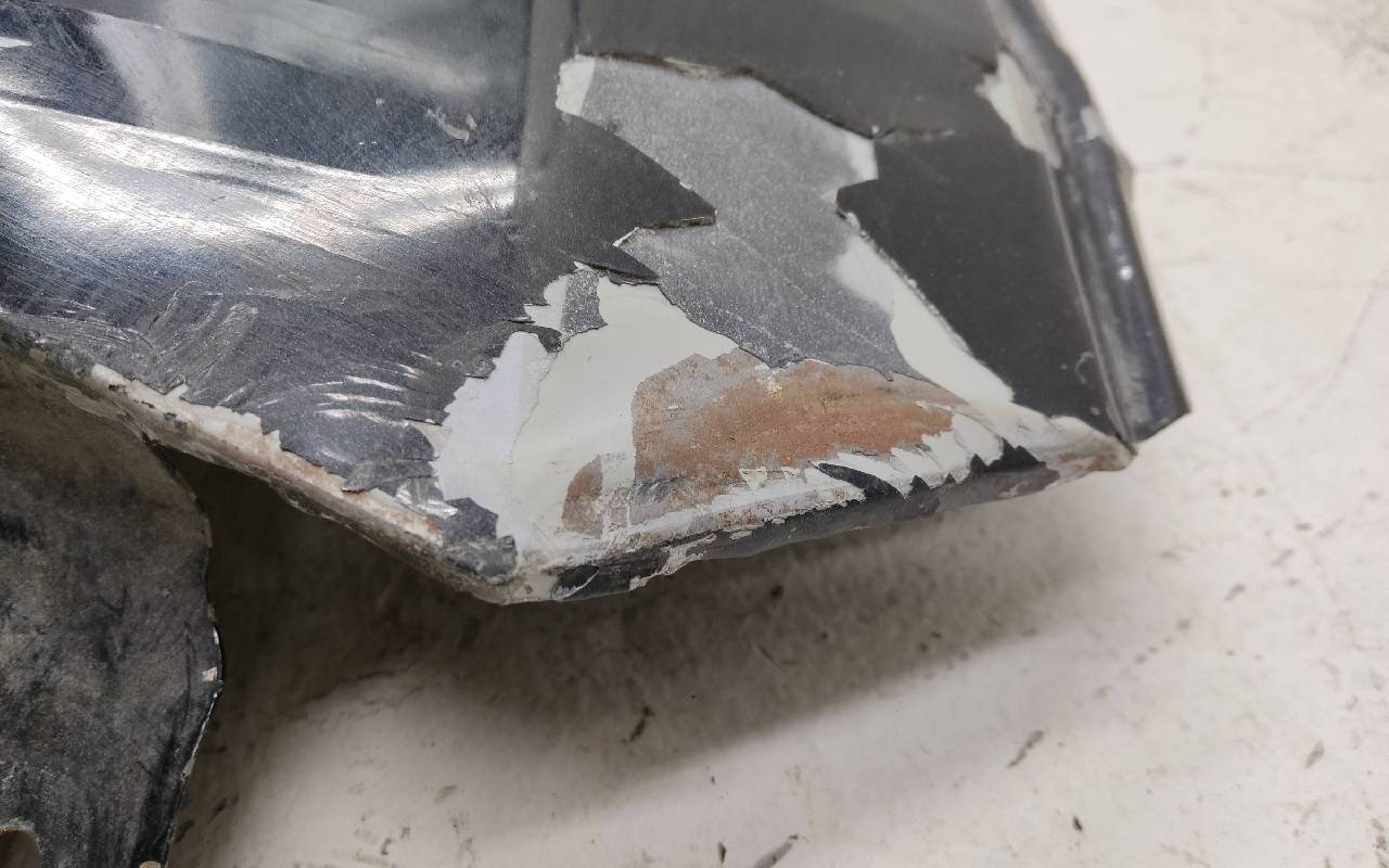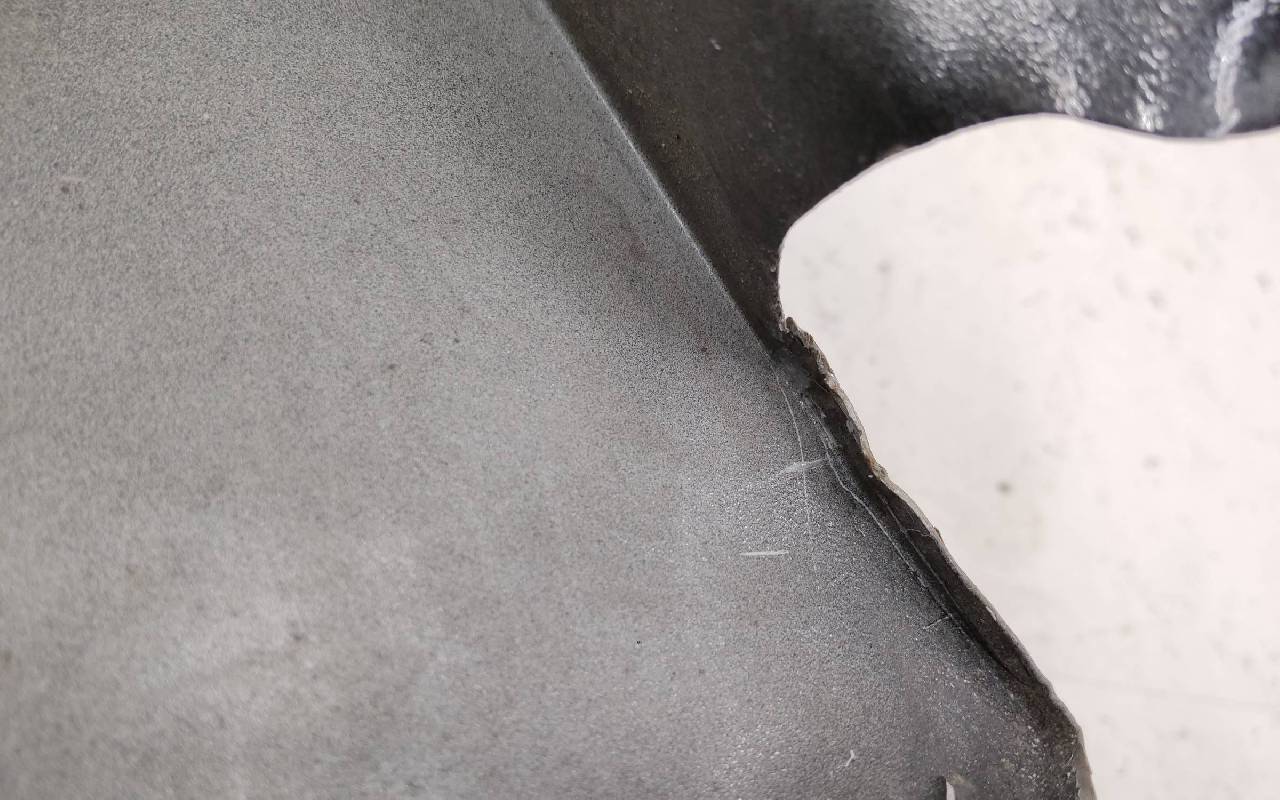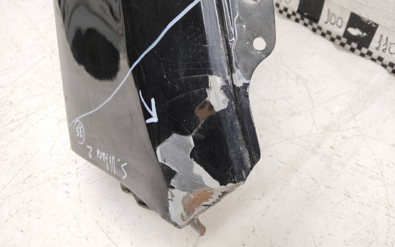 Состояние детали удовлетворительное. Чёрного цвета, скол ЛКП. Ранее производился ремонт и покраска. Вмятина в передней части. Потребуется ремонт
