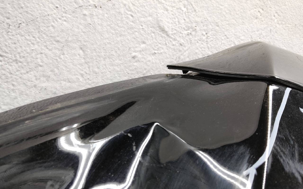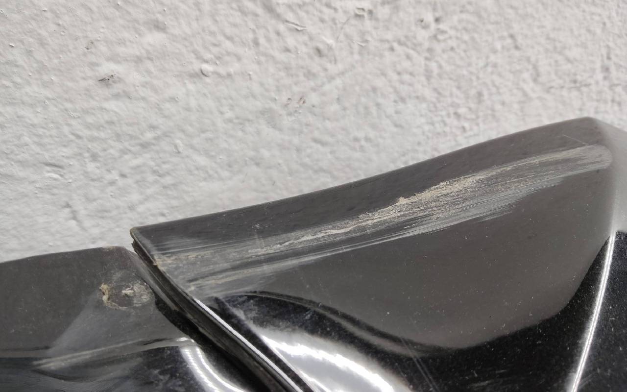 Состояние детали хорошее. Чёрного цвета в плёнке, скол ЛКП. Накладка поцарапана. Небольшая вмятина. Потребуется незначительный ремонт