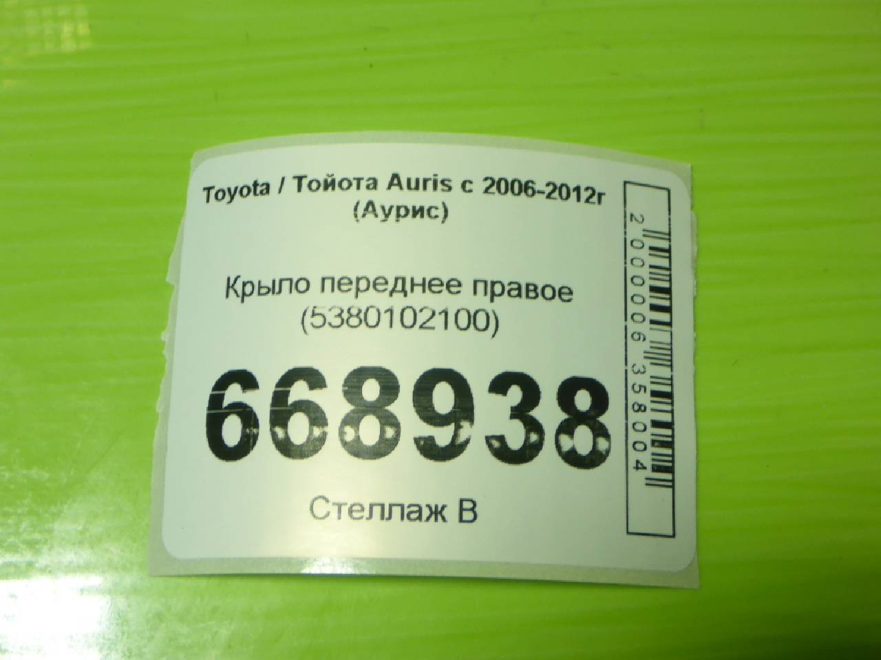 Деталь: Toyota Auris - Крыло переднее правое (5380102100)