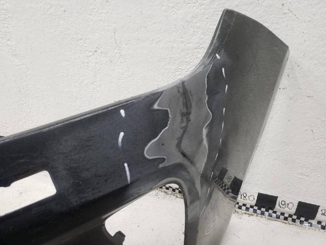 Состояние детали удовлетворительное. Черного цвета,потертость поверхности,под покраску,под парктроники, под омыватели. Дефект крепления на фото, после ремонта. Под ремонт