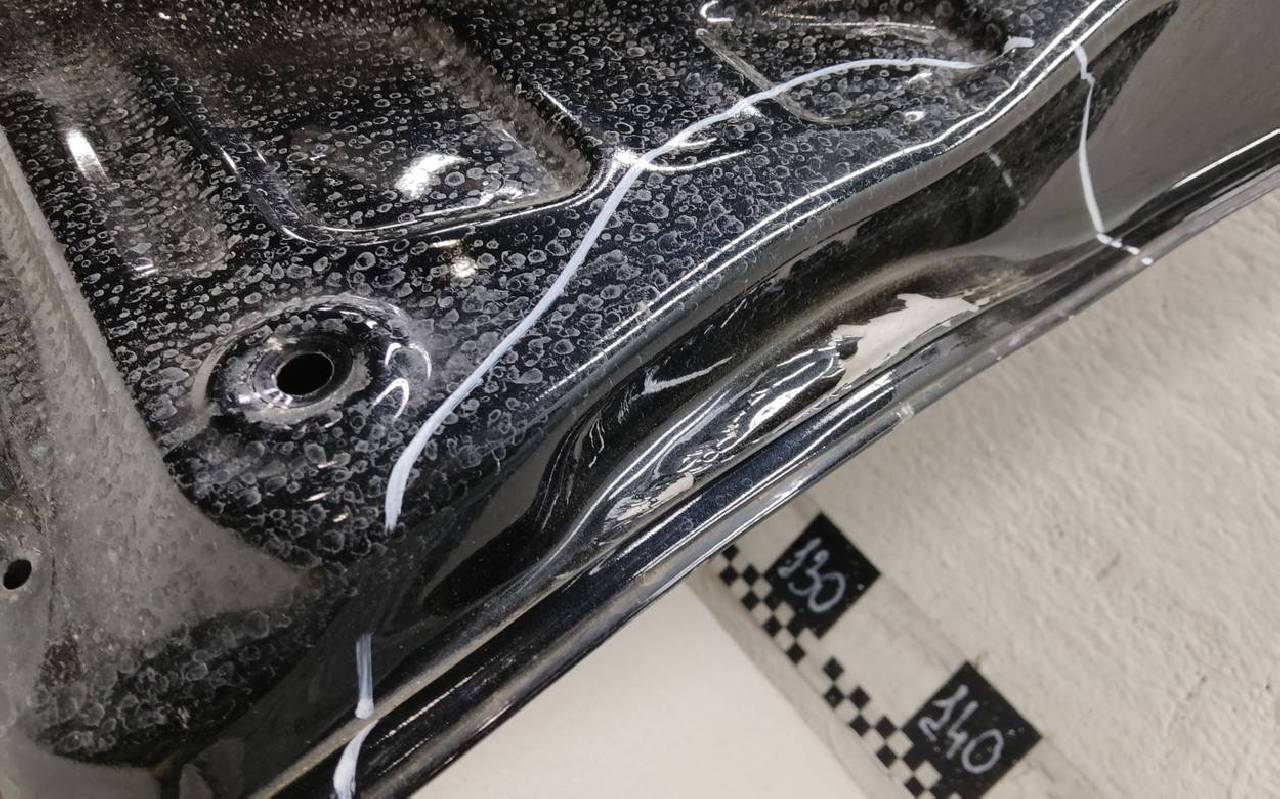 Состояние детали удовлетворительное. Чёрного цвета, скол ЛКП. Вмятины, дефект на внутренней поверхности. Потребуется ремонт