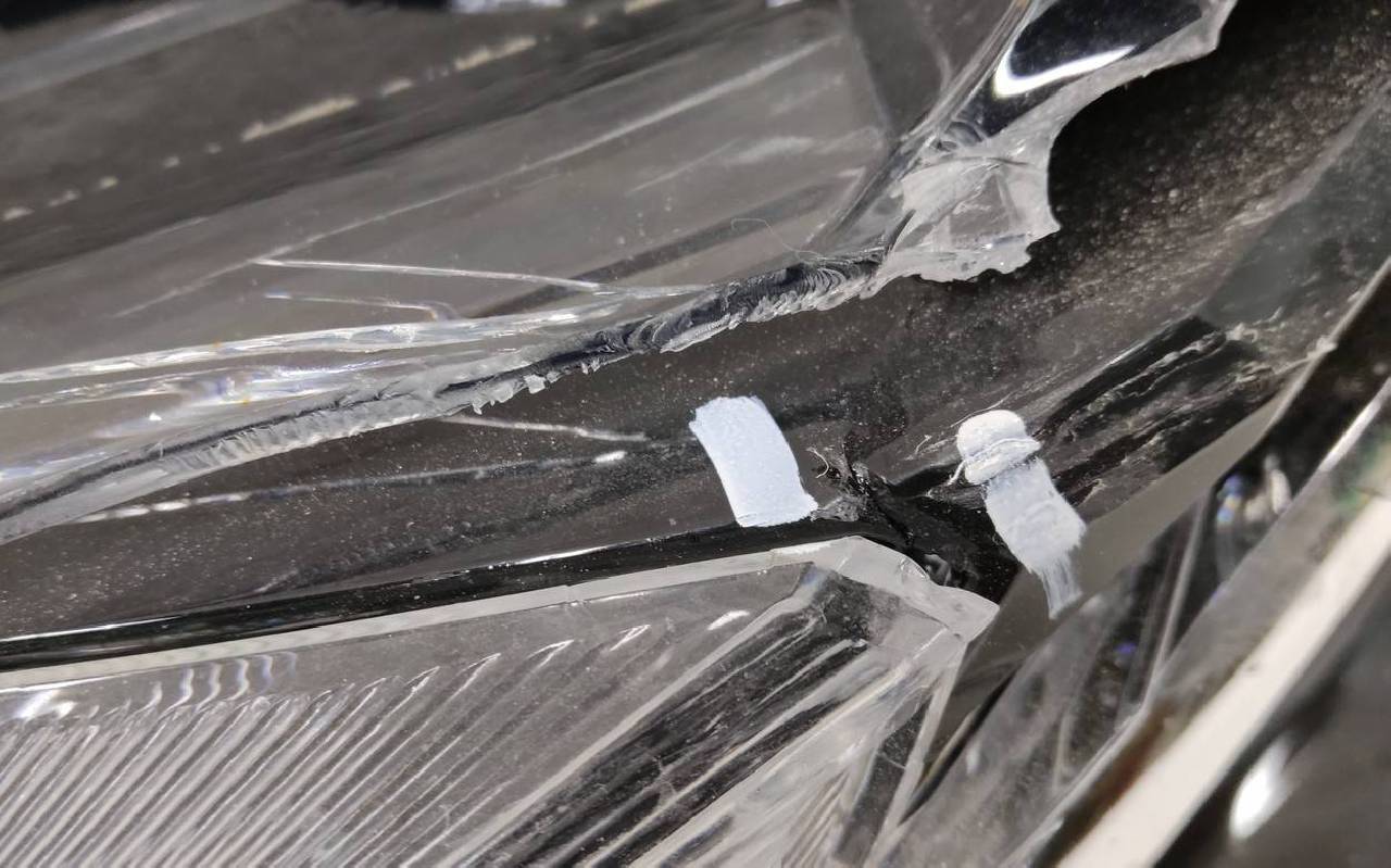 Состояние детали очень плохое. Стекло и корпус разбиты. Трещины маски и отражателя, царапины на рассеивателе. Отсутствуют два кронштейна. На запчасти, без гарантии на возврат
