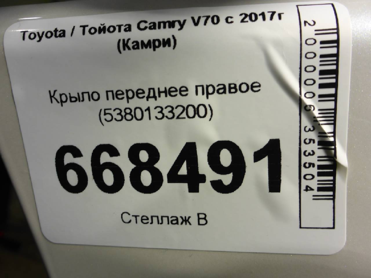 Деталь: Toyota Camry XV70 - Крыло переднее правое (5380133200)