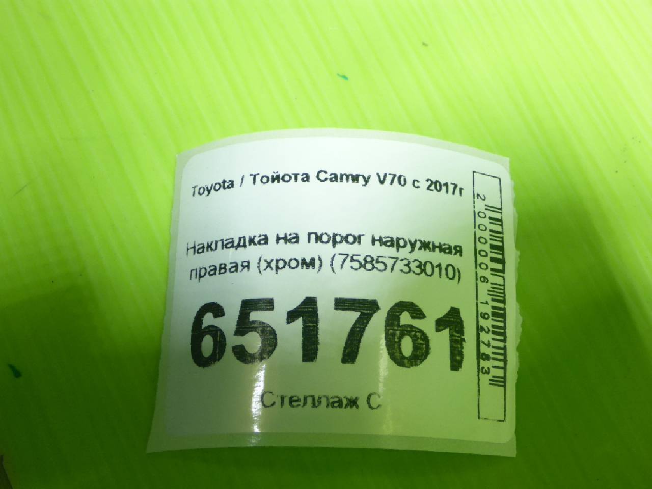 Деталь: Toyota Camry XV70 - Накладка на порог наружная правая (хром) (7585733010)