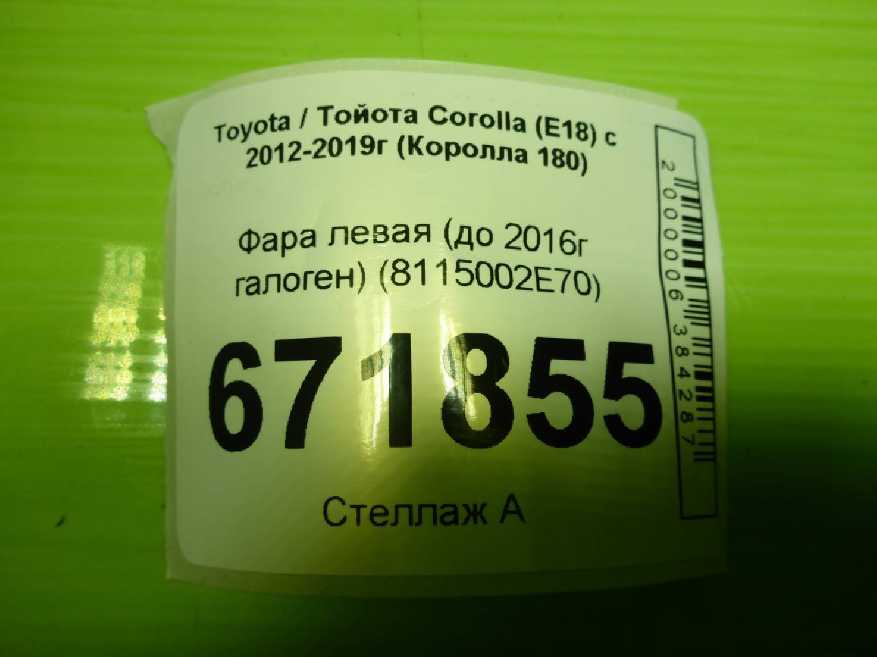 Деталь: Toyota Corolla 180 - Фара левая (до 2016г галоген) (8115002E70)