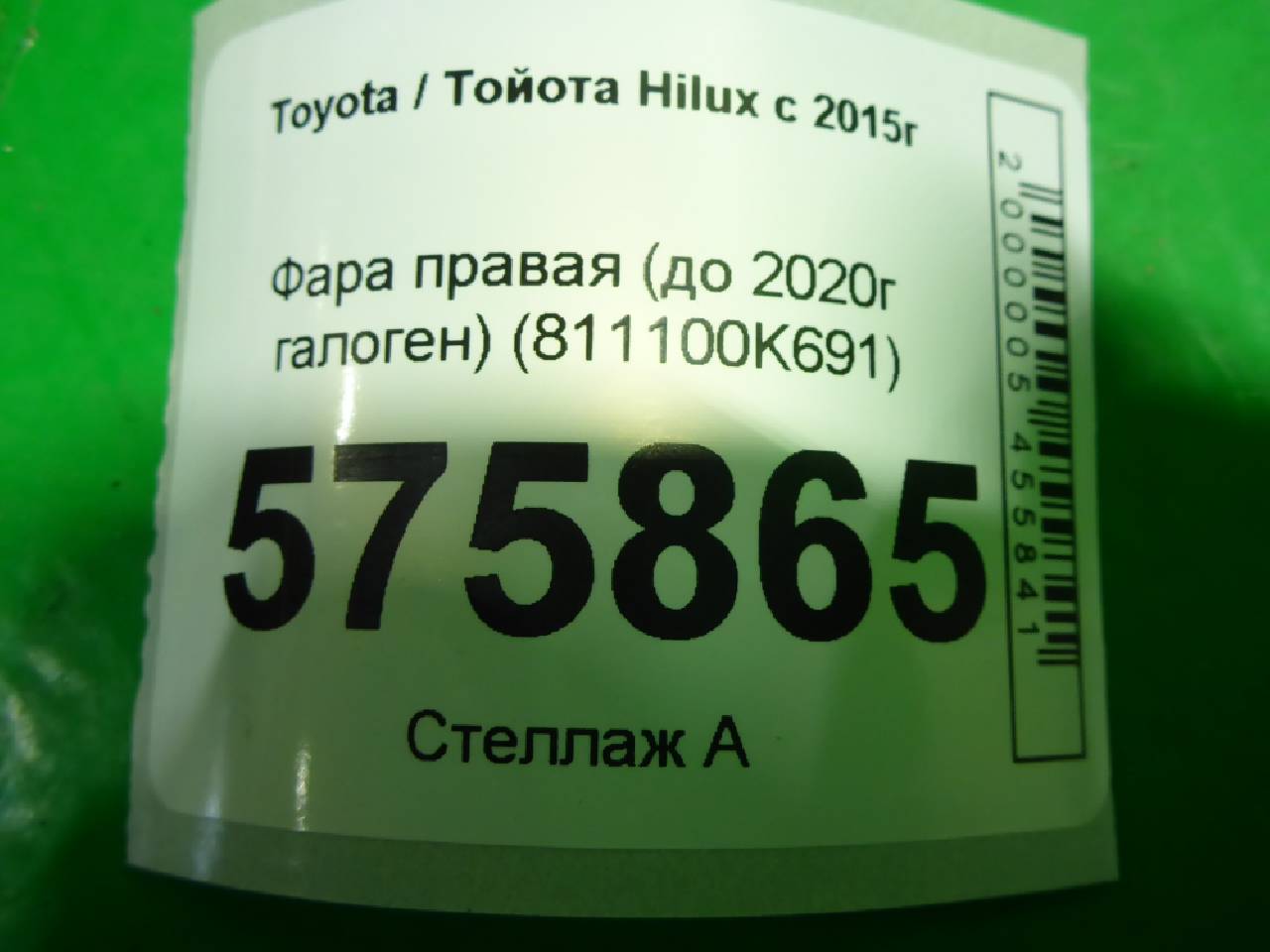 Деталь: Toyota Hilux 8 - Фара правая (до 2020г галоген) (811100K691)