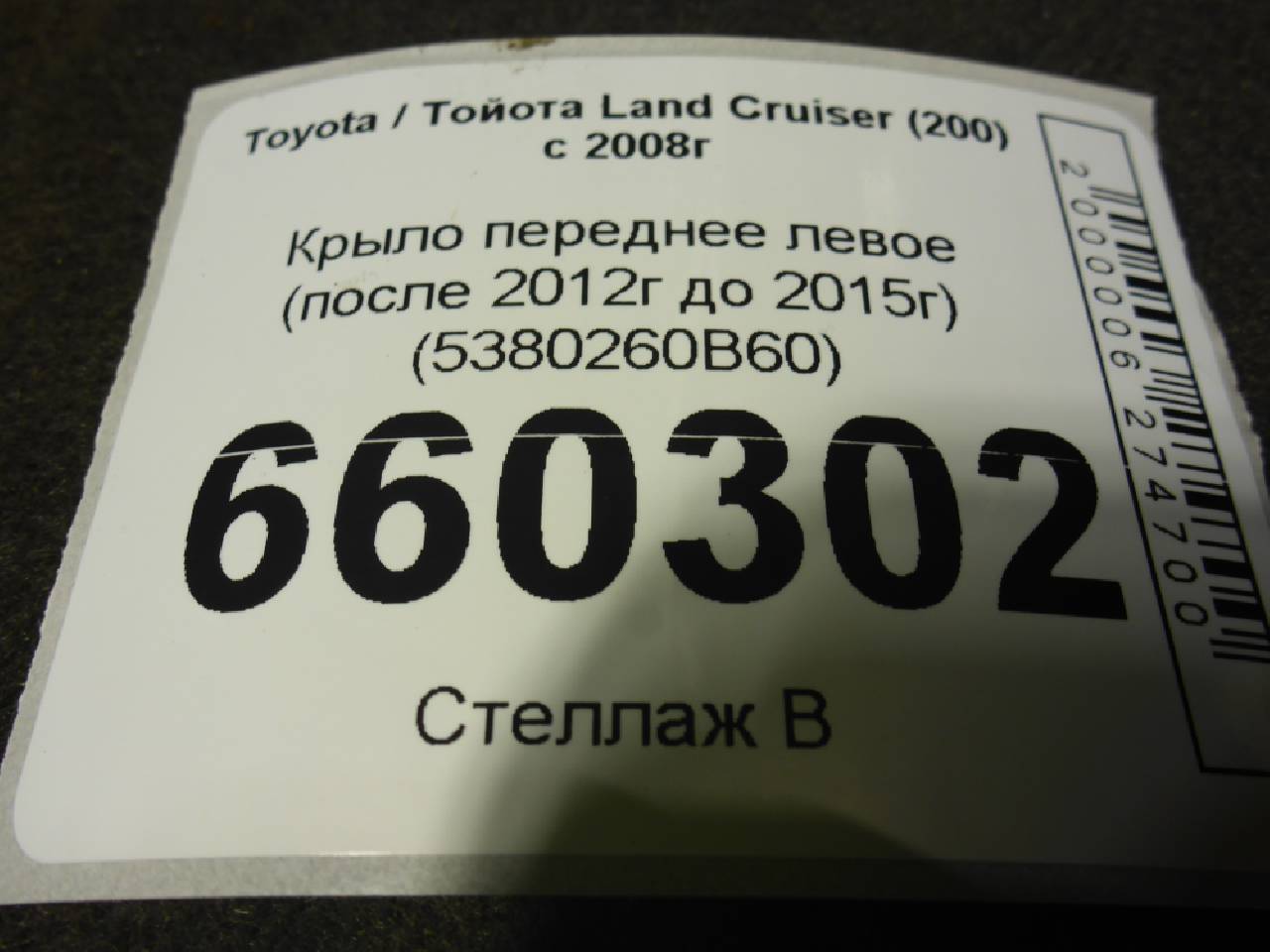 Деталь: Toyota Land Cruiser 200 - Крыло переднее левое (после 2012г до 2015г) (5380260B60)