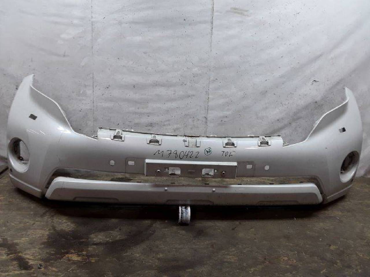 бампер передний Toyota Land Cruiser Prado 150 рестайлинг белого цвета под парктроник и омыватели фар оригинал б/у после незначительного ремонта все крепления целые. . .
