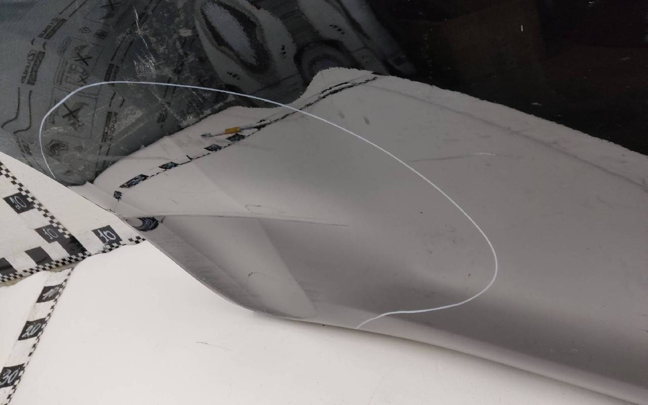Состояние детали удовлетворительное. Чёрного цвета, скол ЛКП. Вмятина, дефект на внутренней поверхности. Потребуется ремонт