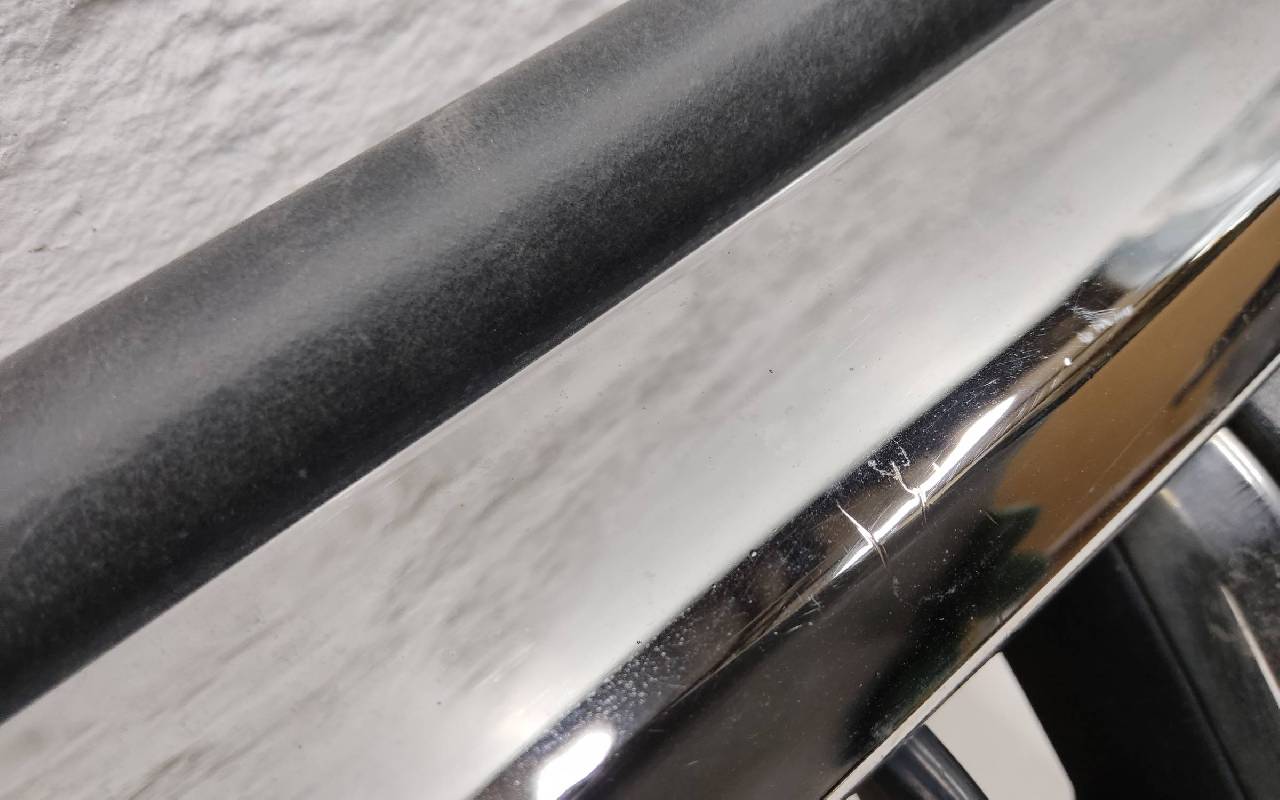 Состояние детали хорошее. Потёртость хрома. Небольшой скол пластика. Отсутствует одно нижнее крепление. Потребуется незначительный ремонт