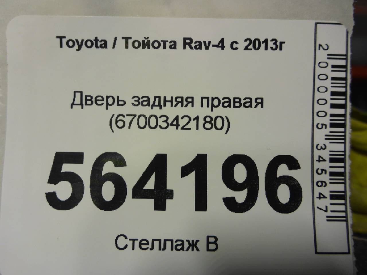 Деталь: Toyota Rav 4 IV - Дверь задняя правая (6700342180)