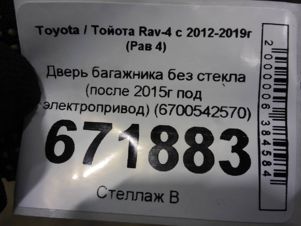 Купить Крышка багажника без стекла (после 2015г под электропривод) (6700542570) 6700542570 для Toyota Rav 4 IV (Тойота Рав 4 Rav4 Rav4 CA40) RR671883 ✓ с доставкой по Москве и России
