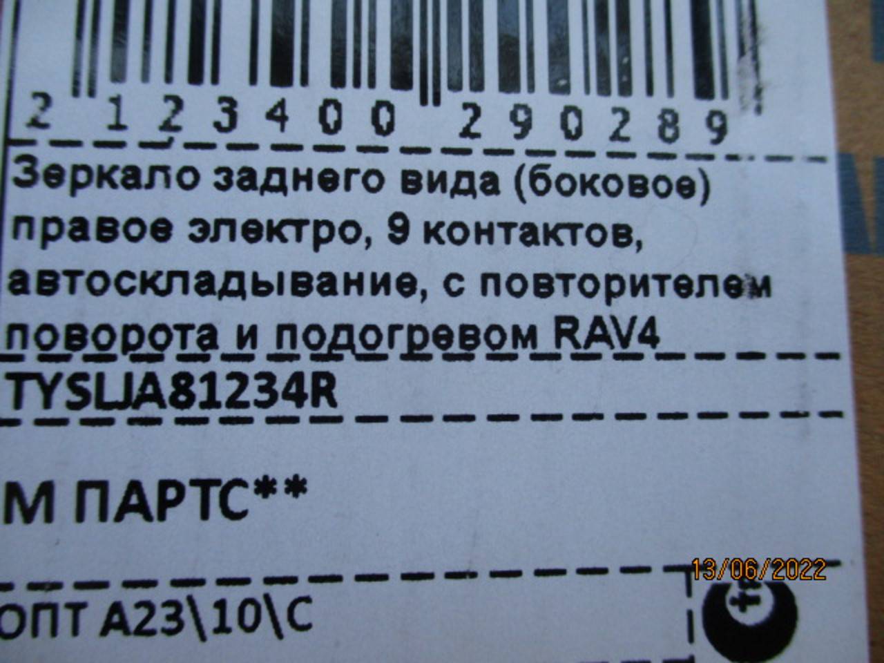 Деталь: Toyota Rav 4 IV - Зеркало правое (новая)