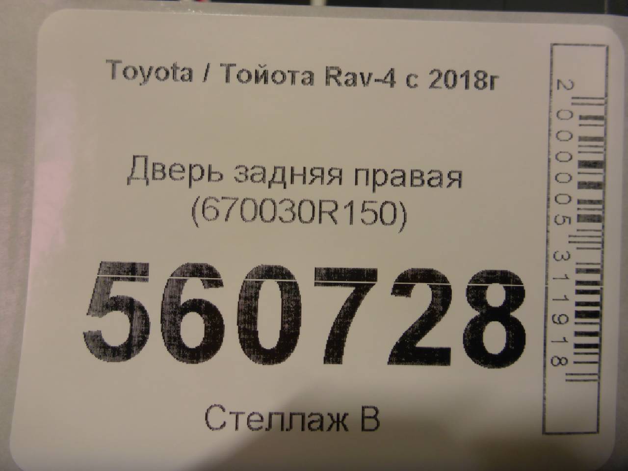 Купить Дверь задняя правая (670030R150) 670030R150 для Toyota Rav 4 V (Тойота Рав 4 Rav4 В) RR560728 ✓ с доставкой по Москве и России