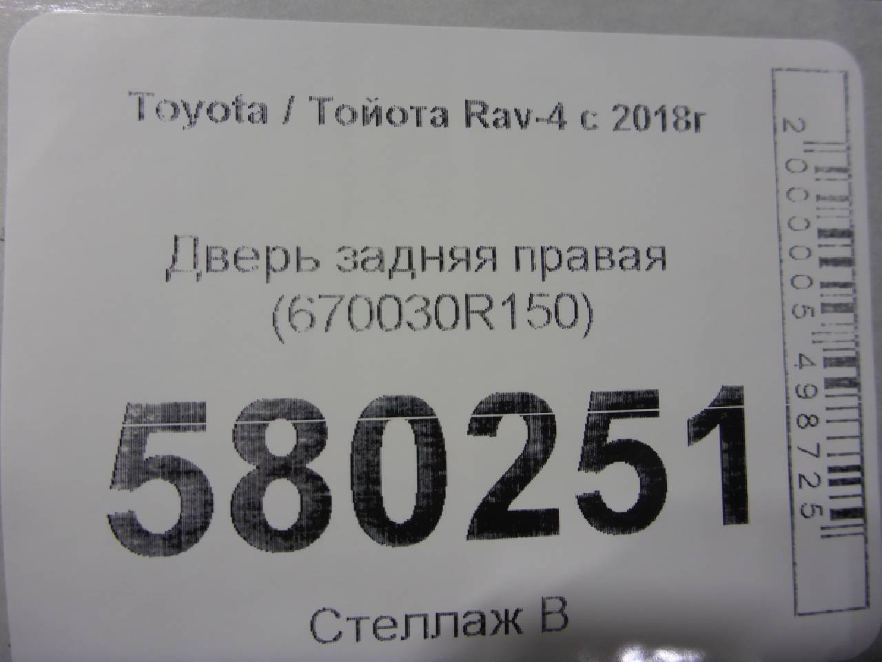Главная > Toyota > Rav 4 V > Toyota Rav 4 V - Дверь задняя правая (670030R150) - 670030R150 - RR580251