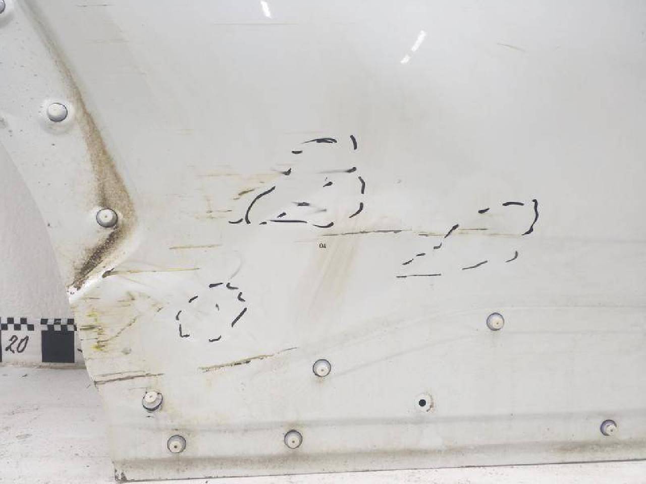 Состояние детали хорошее. Белого цвета, потертость поверхности. В нижней части двери по центру вмятинки на фото. Ремонтопригодно