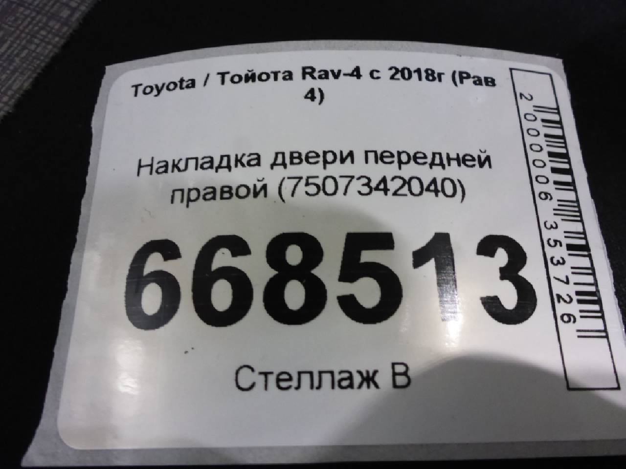 Деталь: Toyota Rav 4 V - Накладка двери передней правой (7507342040)