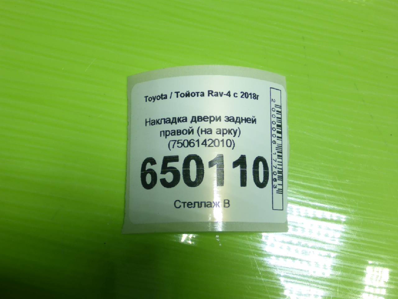 Купить Накладка двери задней правой (на арку) (7506142010) 7506142010 для Toyota Rav 4 V (Тойота Рав 4 Rav4 В) RR650110 ✓ с доставкой по Москве и России