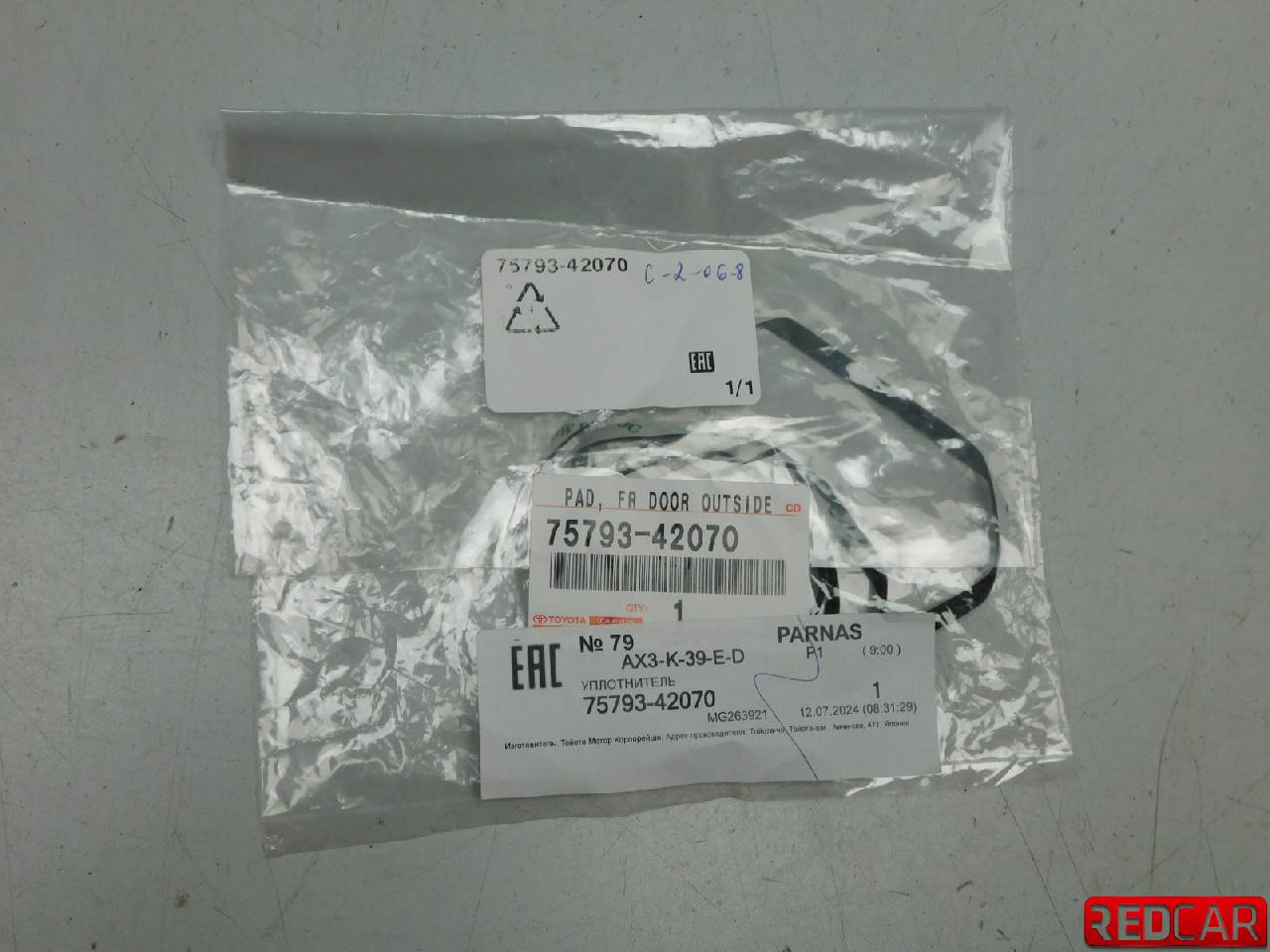 Оригинал Toyota. Уплотнитель на накладку передней двери.