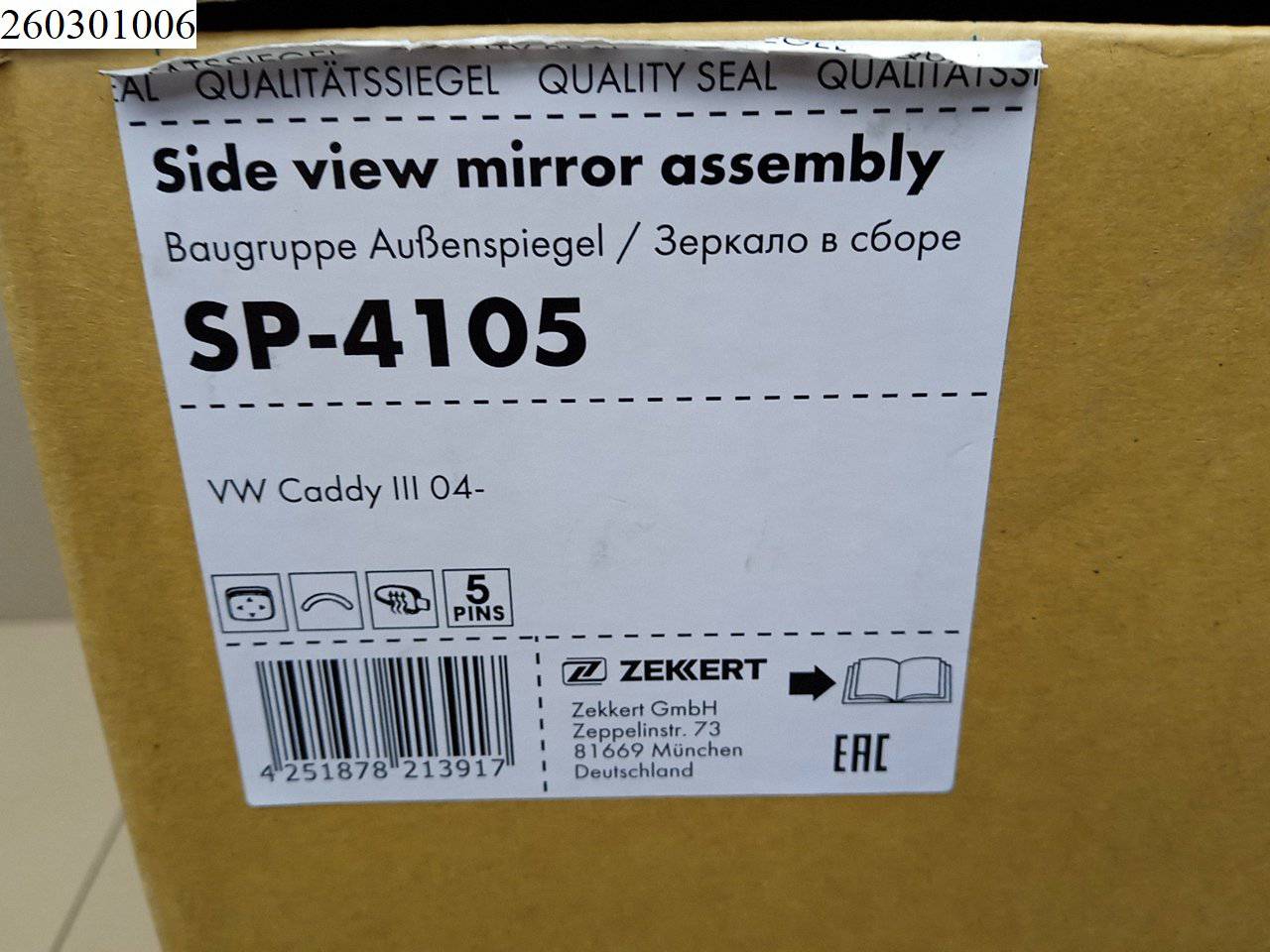 Купить Зеркало правое SP4105;SP4105;7H1857522J;7H1857528A9B9;2K5857508AE9B9 для Volkswagen Caddy 3 (Фольцваген Фольксфаген Кедди Кадди 3) ZC260301006 ✓ с доставкой по Москве и России