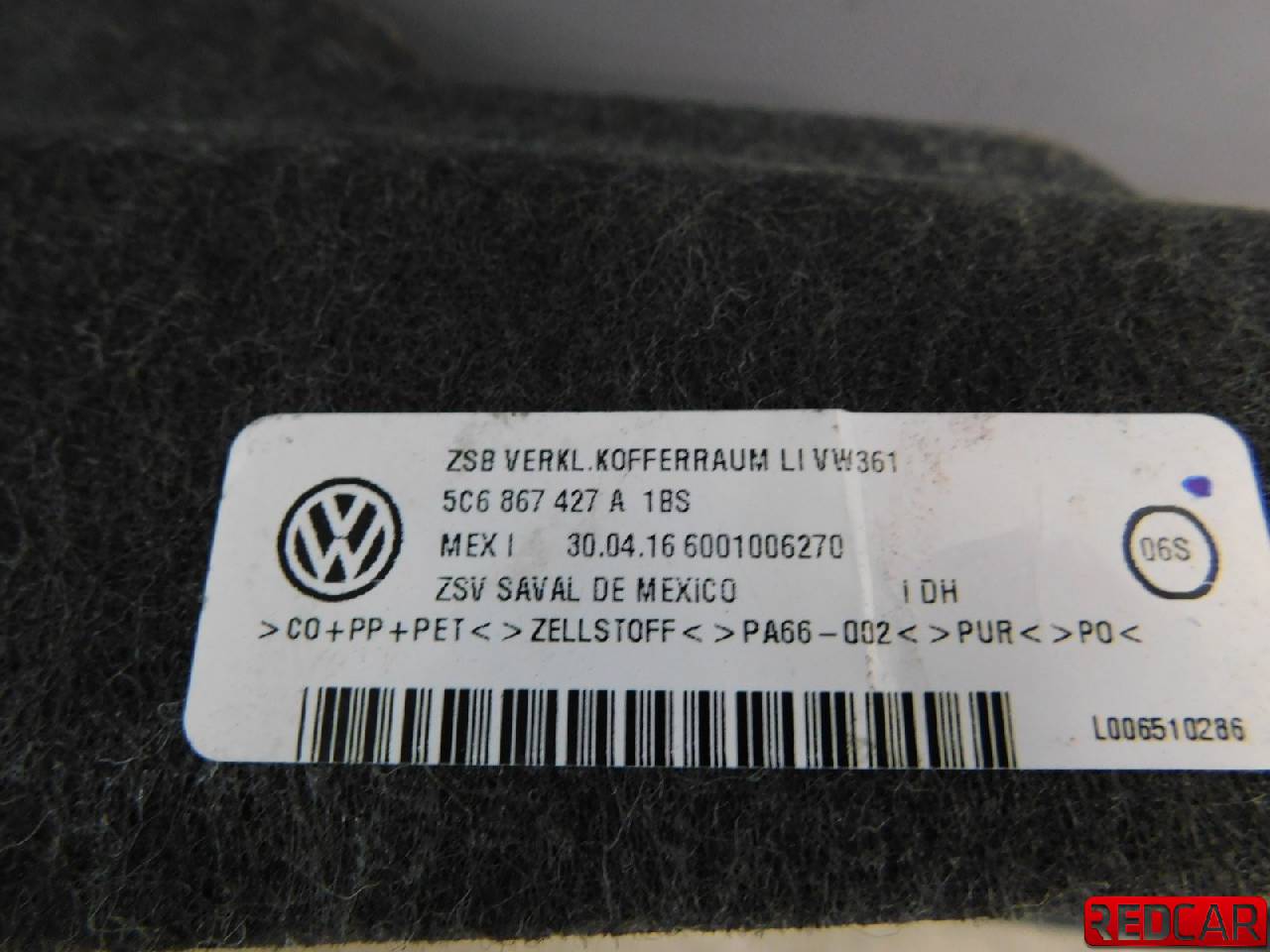 • Volkswagen Jetta 6 - Обшивка багажника - 5C6867427A~5C6867427A1BS - 43168074