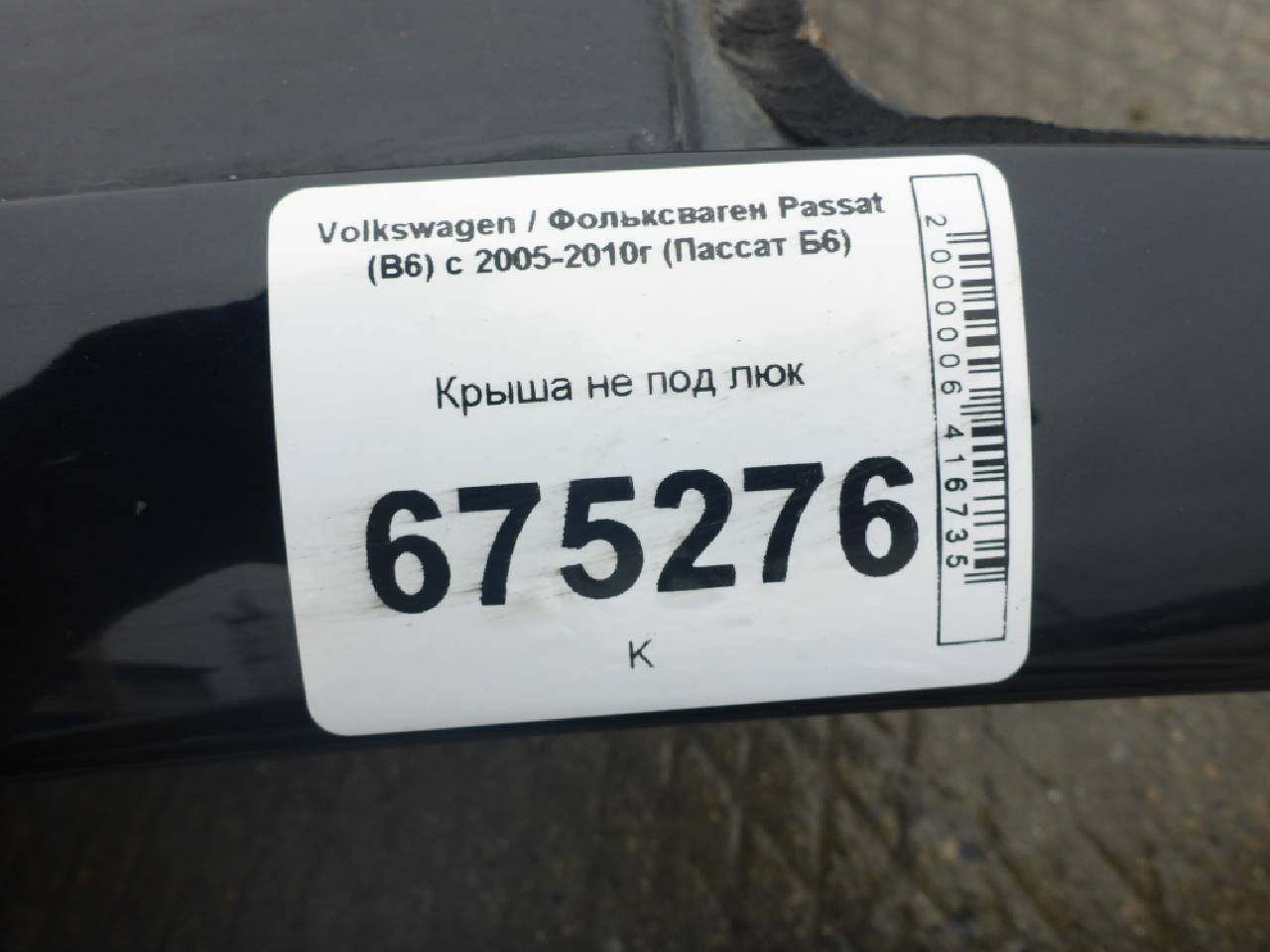 Деталь: Volkswagen Passat B6 - Крыша не под люк (седан)