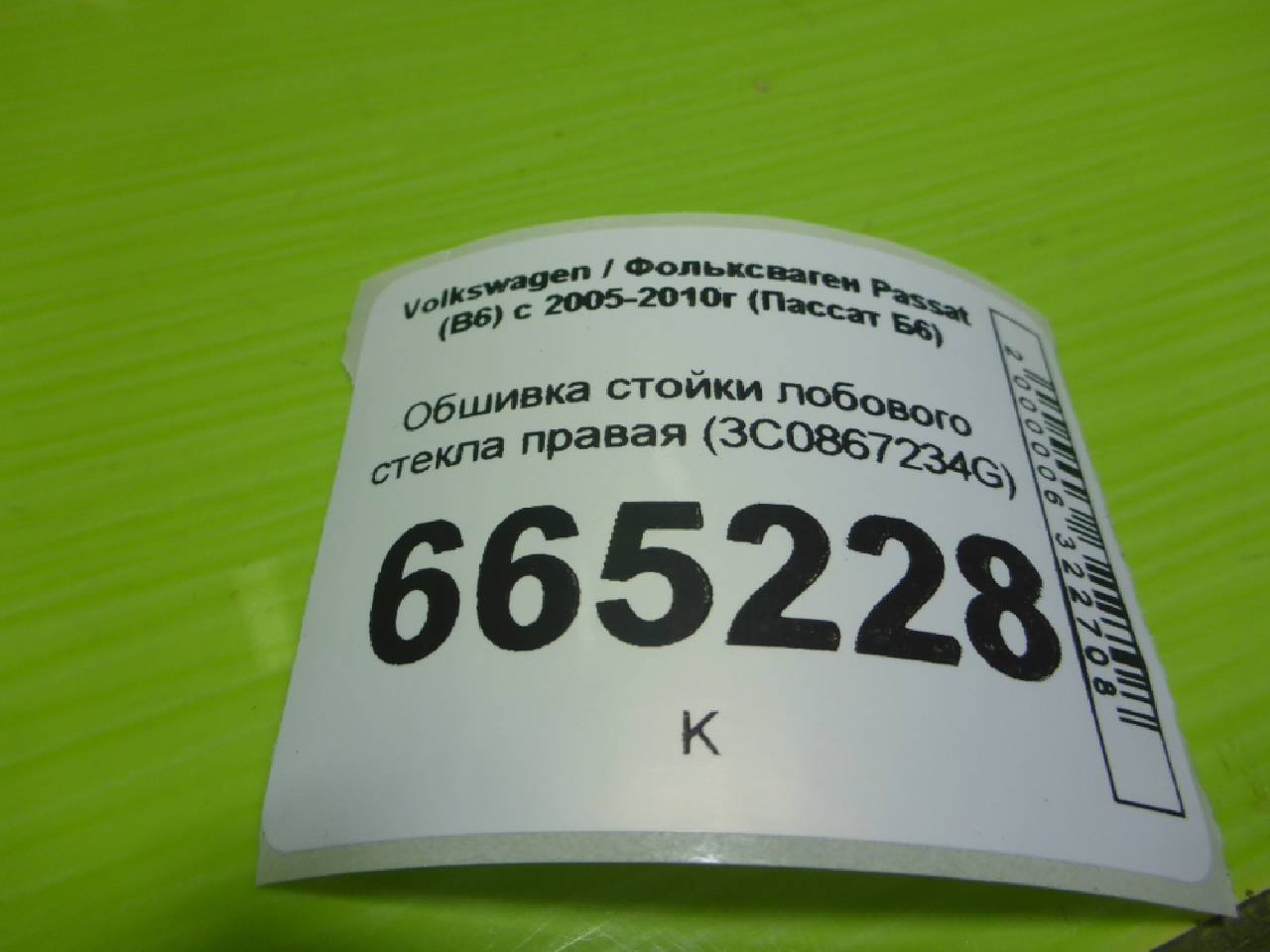 Купить Обшивка стойки лобового стекла правая (3C0867234G) 3C0867234G для Volkswagen Passat B6 (Фольцваген Фольксфаген Пассат Б6) RR665228 ✓ с доставкой по Москве и России